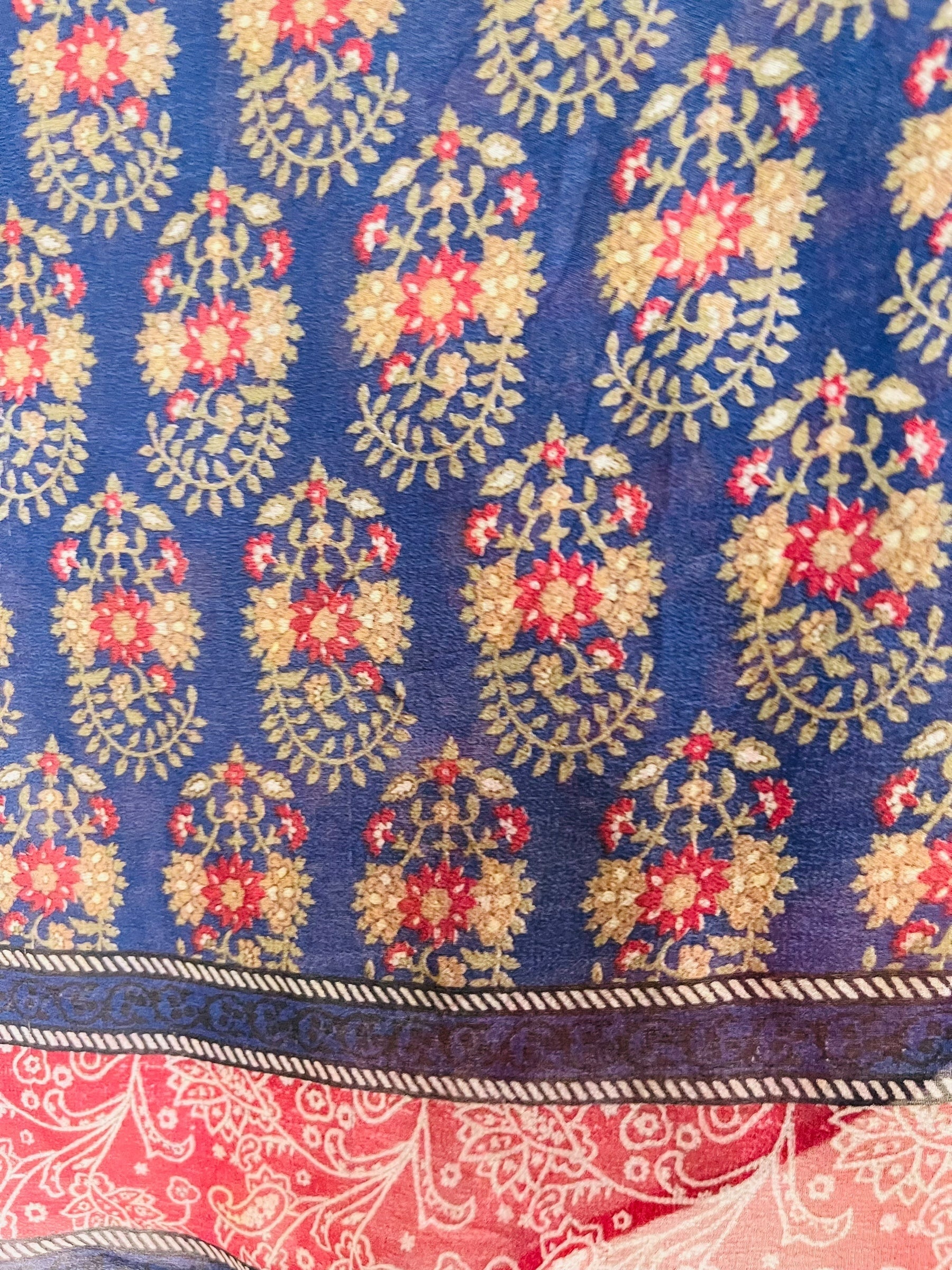 In Eastern philosophy, an Avatar is an incarnation that teaches how to evolve virtues of the past into the present. The Pure Upcycled Silk Avatar Collection is made from vintage pure silk saris, chosen and worn by women in the past to celebrate their lives.If you look very closely, you will see that the silks in this collection show some of the character of their previous incarnations through the appliqués that have been lovingly applied to bring new life to the fabric. This piece is a reminder that we are part of a collective journey to which we all add a little something.