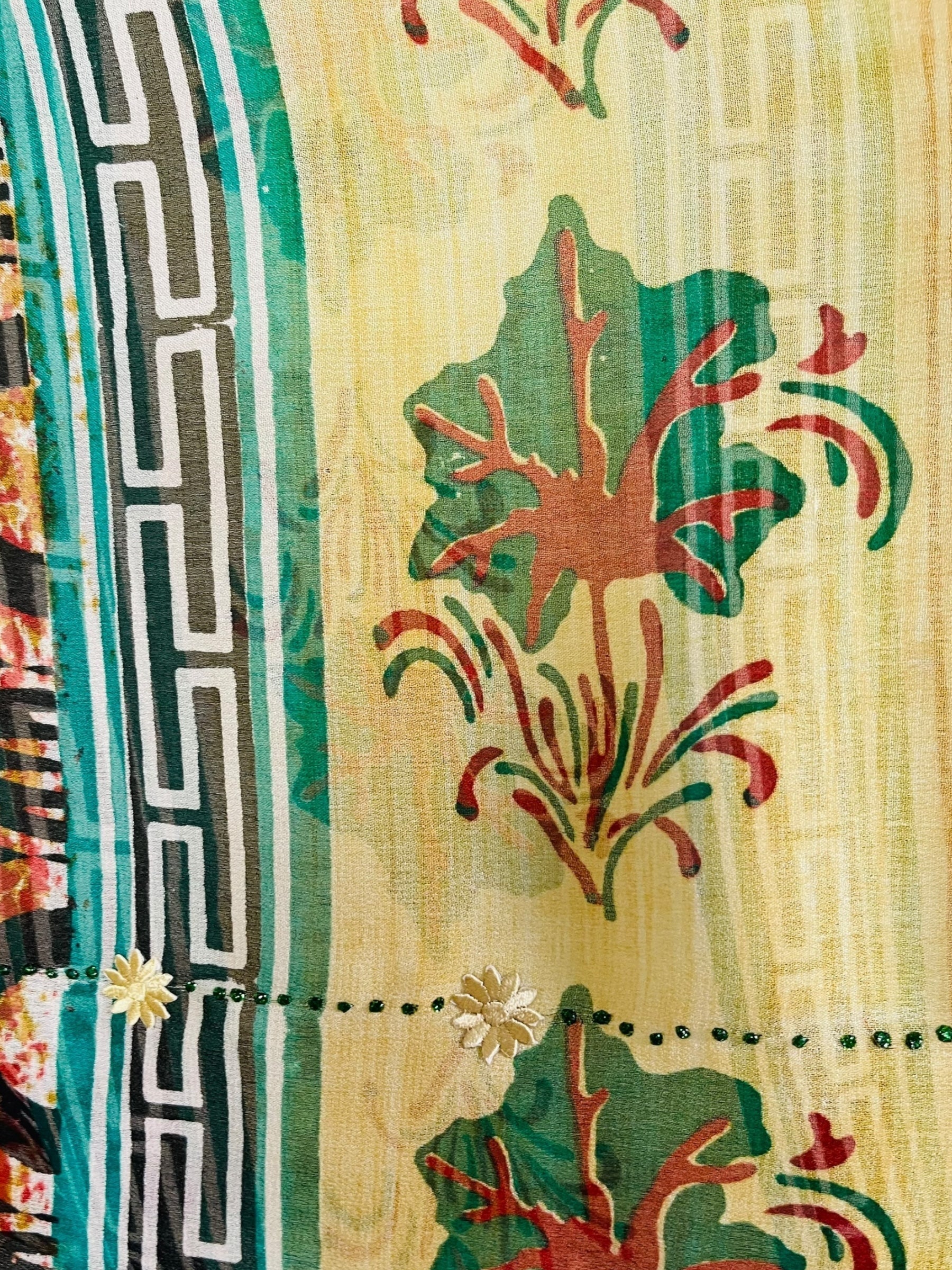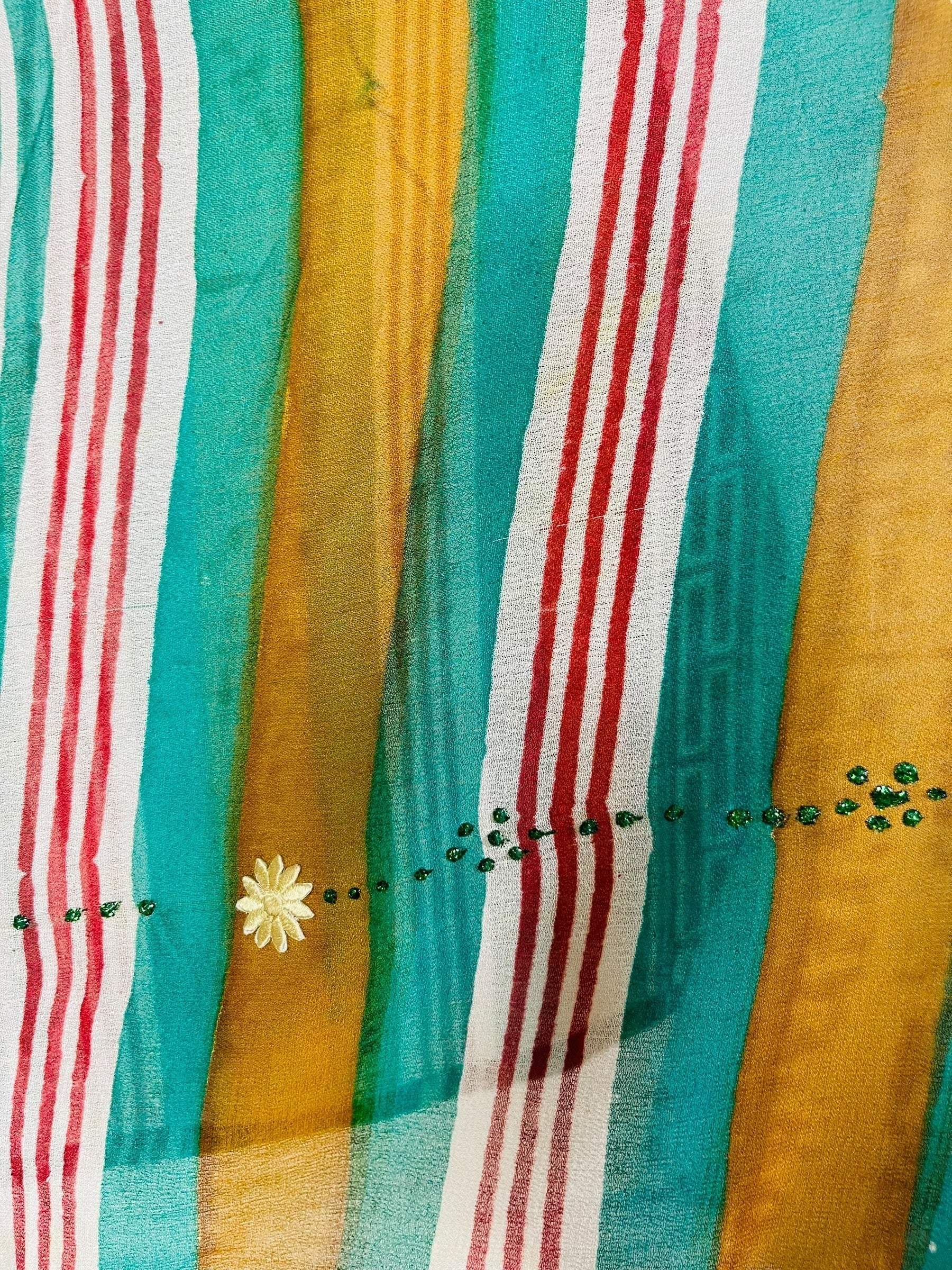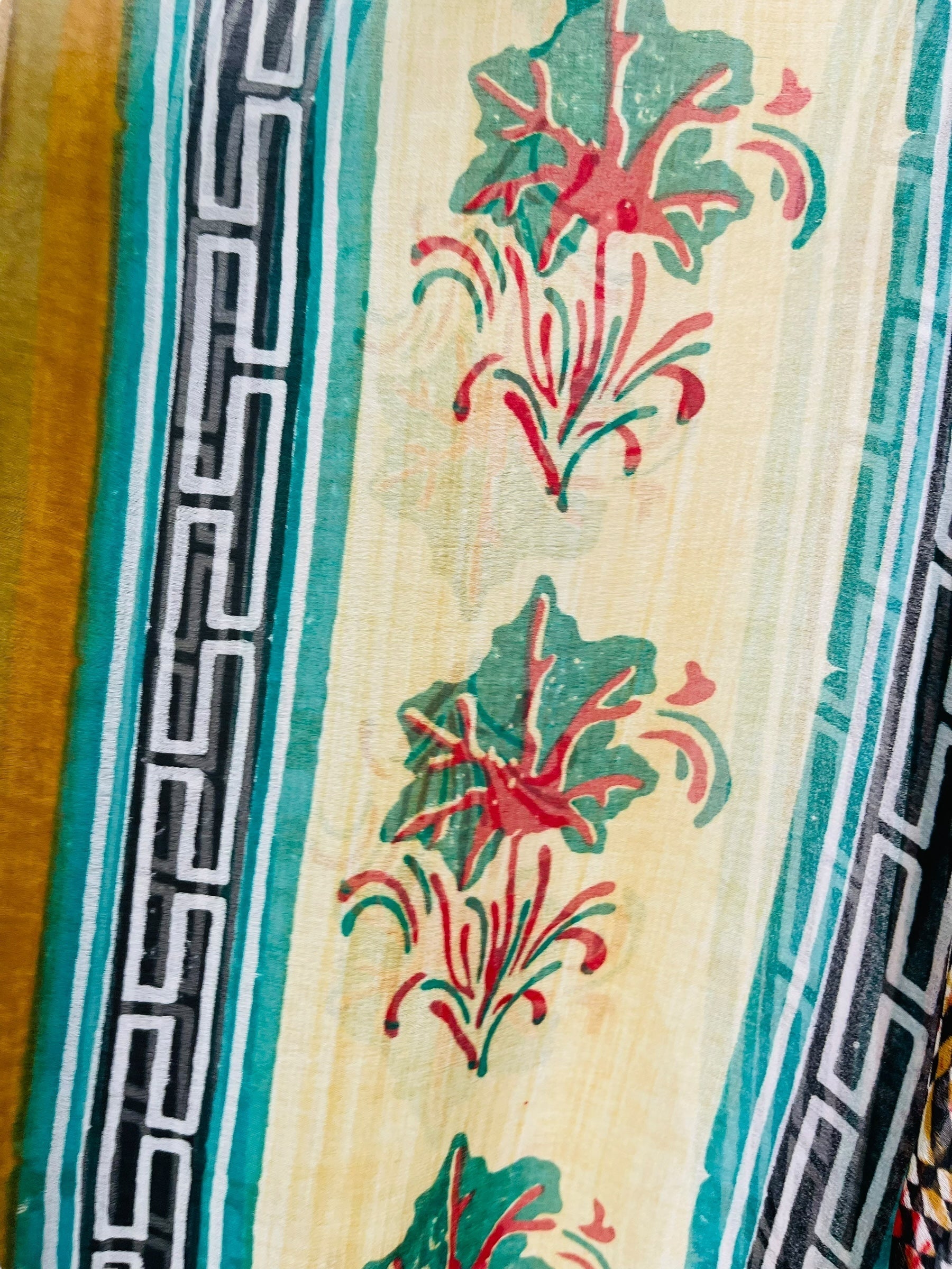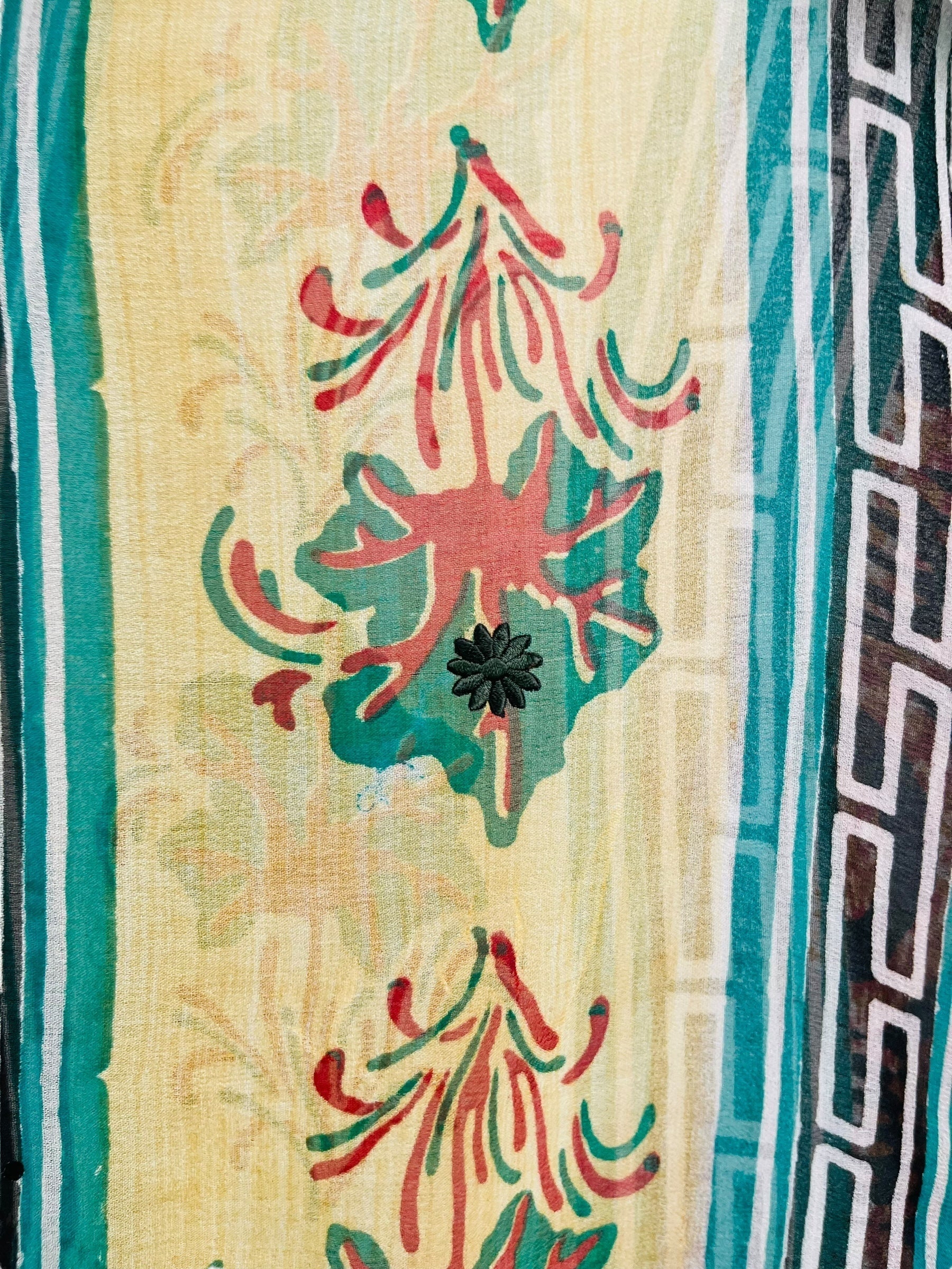 In Eastern philosophy, an Avatar is an incarnation that teaches how to evolve virtues of the past into the present. The Pure Upcycled Silk Avatar Collection is made from vintage pure silk saris, chosen and worn by women in the past to celebrate their lives.If you look very closely, you will see that the silks in this collection show some of the character of their previous incarnations through the appliqués that have been lovingly applied to bring new life to the fabric. This piece is a reminder that we are part of a collective journey to which we all add a little something.