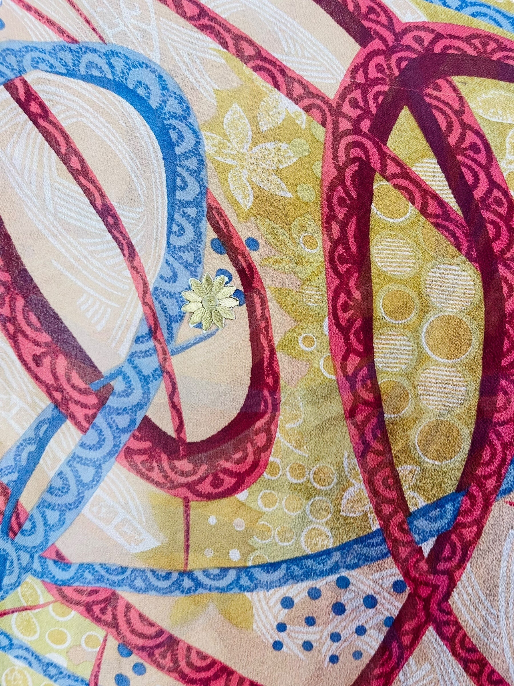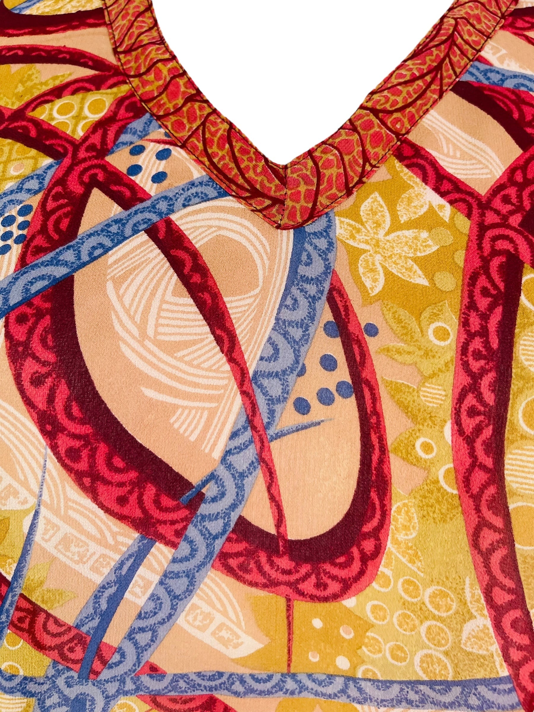 In Eastern philosophy, an Avatar is an incarnation that teaches how to evolve virtues of the past into the present. The Pure Upcycled Silk Avatar Collection is made from vintage pure silk saris, chosen and worn by women in the past to celebrate their lives.If you look very closely, you will see that the silks in this collection show some of the character of their previous incarnations through the appliqués that have been lovingly applied to bring new life to the fabric. This piece is a reminder that we are part of a collective journey to which we all add a little something.