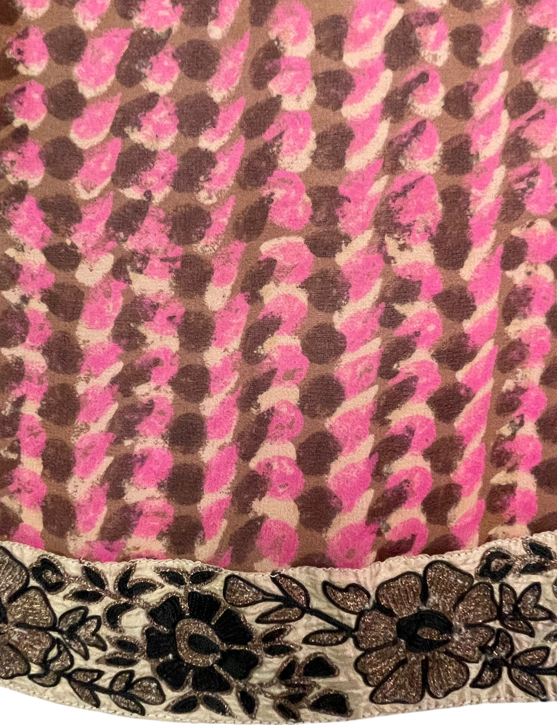 In Eastern philosophy, an Avatar is an incarnation that teaches how to evolve virtues of the past into the present. The Pure Upcycled Silk Avatar Collection is made from vintage pure silk saris, chosen and worn by women in the past to celebrate their lives.If you look very closely, you will see that the silks in this collection show some of the character of their previous incarnations through the appliqués that have been lovingly applied to bring new life to the fabric. This piece is a reminder that we are part of a collective journey to which we all add a little something.