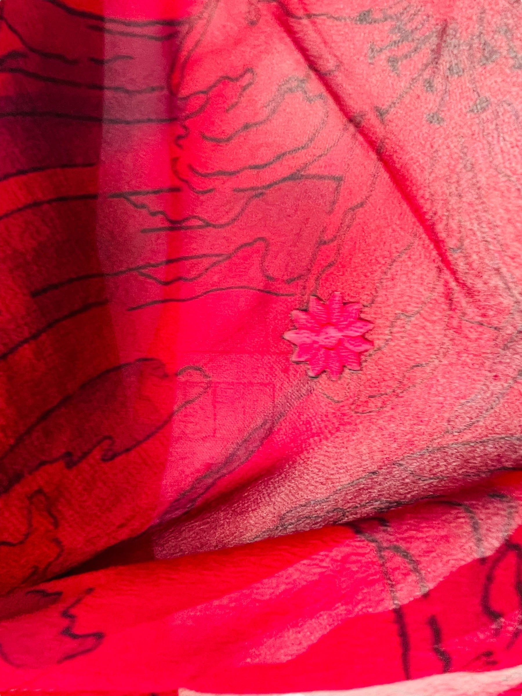 In Eastern philosophy, an Avatar is an incarnation that teaches how to evolve virtues of the past into the present. The Pure Upcycled Silk Avatar Collection is made from vintage pure silk saris, chosen and worn by women in the past to celebrate their lives.If you look very closely, you will see that the silks in this collection show some of the character of their previous incarnations through the appliqués that have been lovingly applied to bring new life to the fabric. This piece is a reminder that we are part of a collective journey to which we all add a little something.