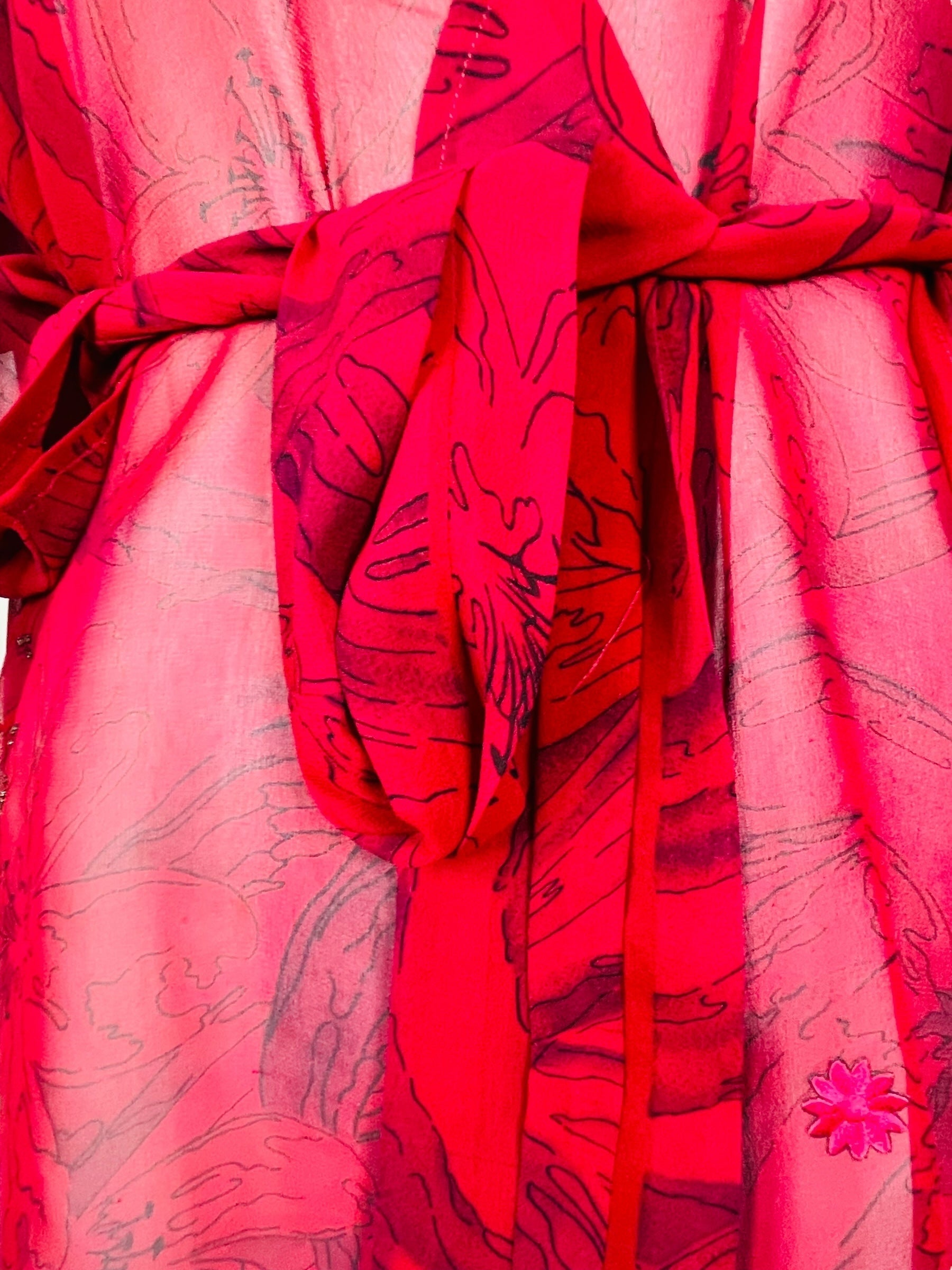 PRG7489 Sheer Avatar Pure Silk Kimono-Sleeved Jacket with Belt