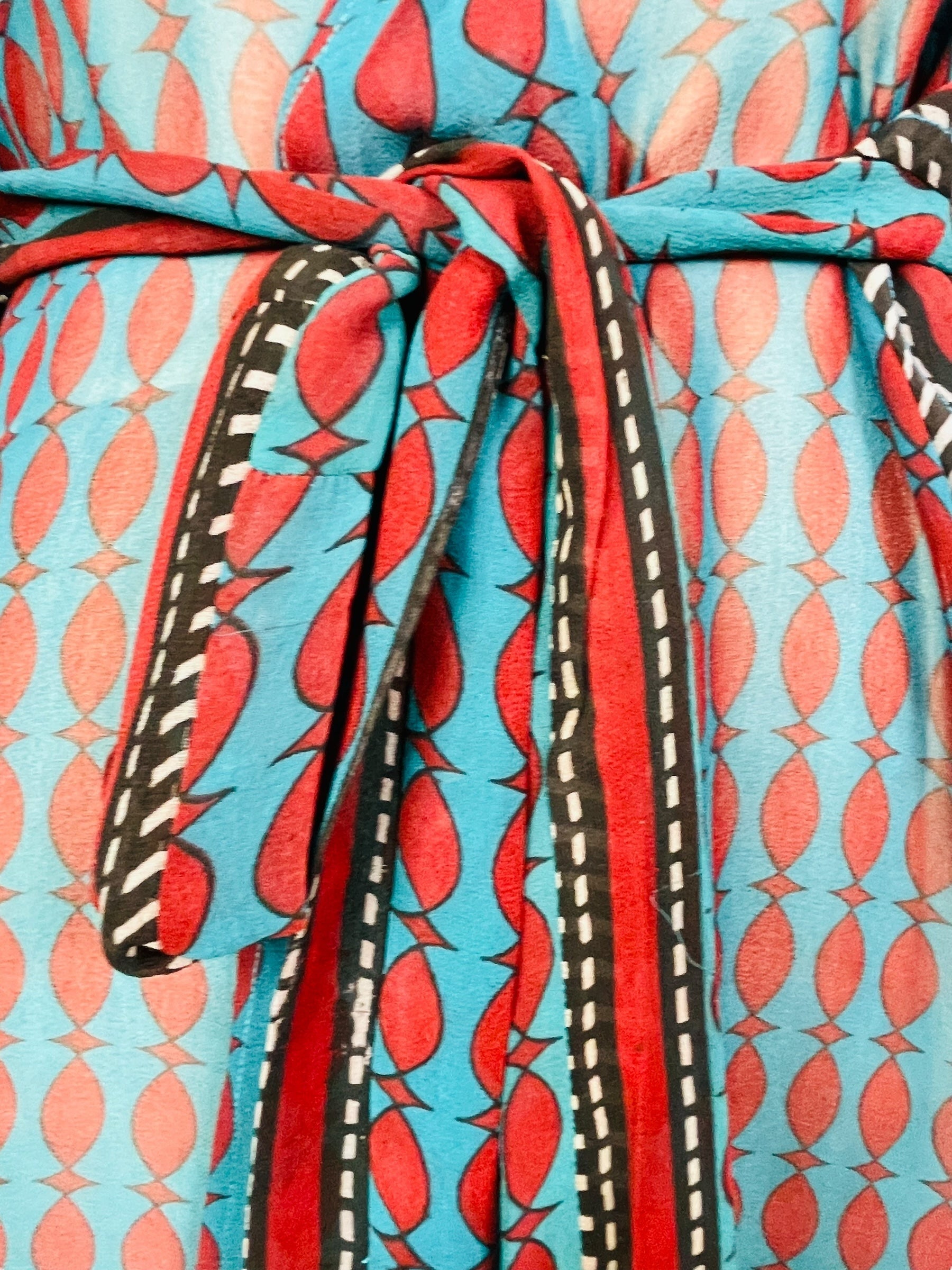 In Eastern philosophy, an Avatar is an incarnation that teaches how to evolve virtues of the past into the present. The Pure Upcycled Silk Avatar Collection is made from vintage pure silk saris, chosen and worn by women in the past to celebrate their lives.If you look very closely, you will see that the silks in this collection show some of the character of their previous incarnations through the appliqués that have been lovingly applied to bring new life to the fabric. This piece is a reminder that we are part of a collective journey to which we all add a little something.