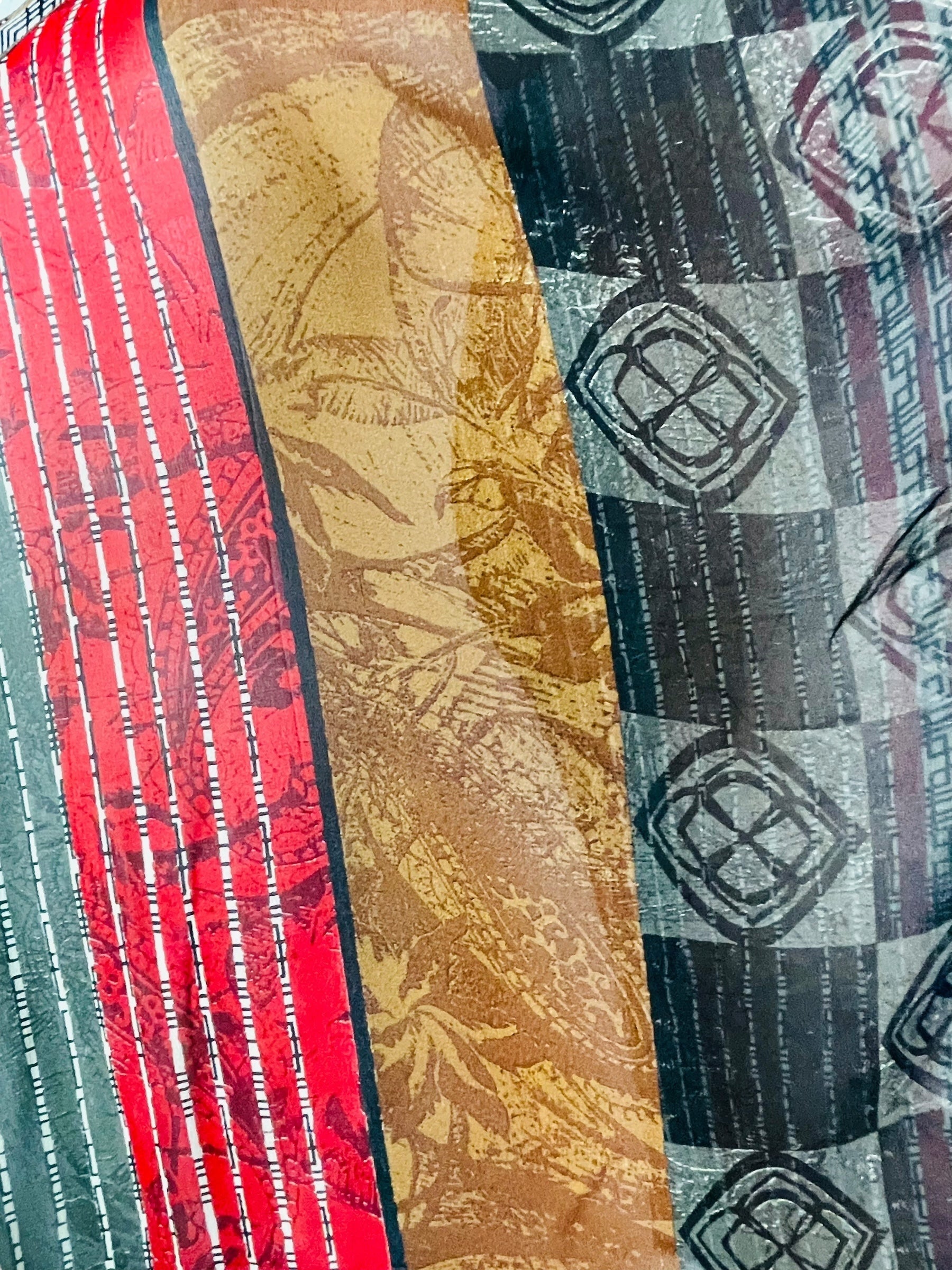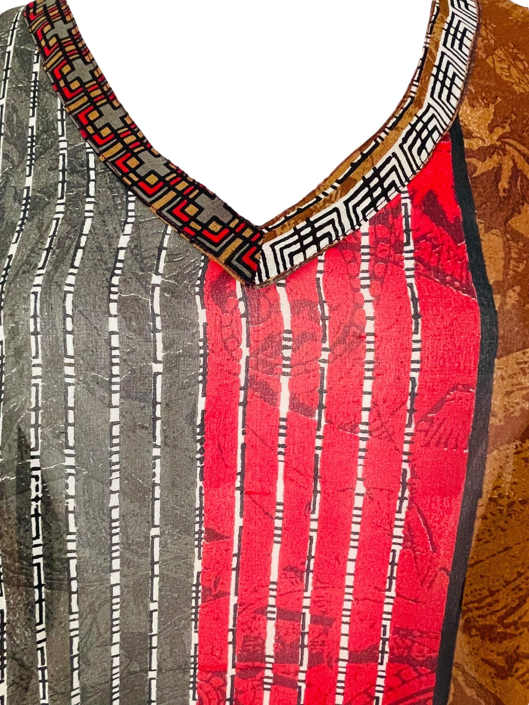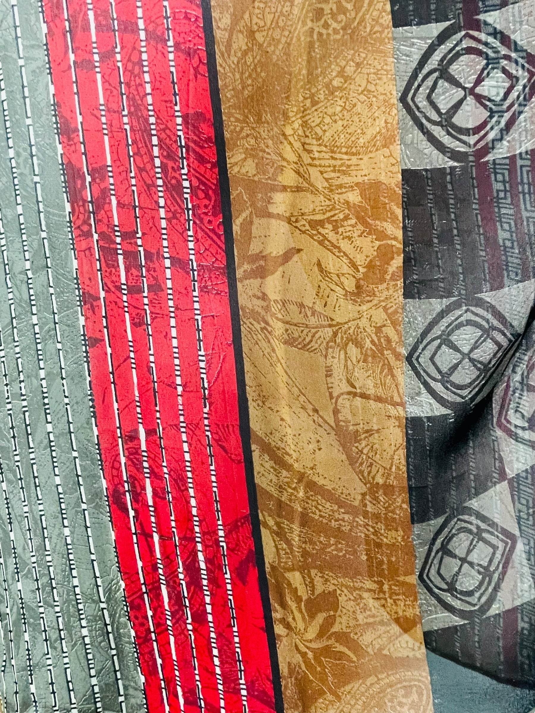 In Eastern philosophy, an Avatar is an incarnation that teaches how to evolve virtues of the past into the present. The Pure Upcycled Silk Avatar Collection is made from vintage pure silk saris, chosen and worn by women in the past to celebrate their lives.If you look very closely, you will see that the silks in this collection show some of the character of their previous incarnations through the appliqués that have been lovingly applied to bring new life to the fabric. This piece is a reminder that we are part of a collective journey to which we all add a little something.
