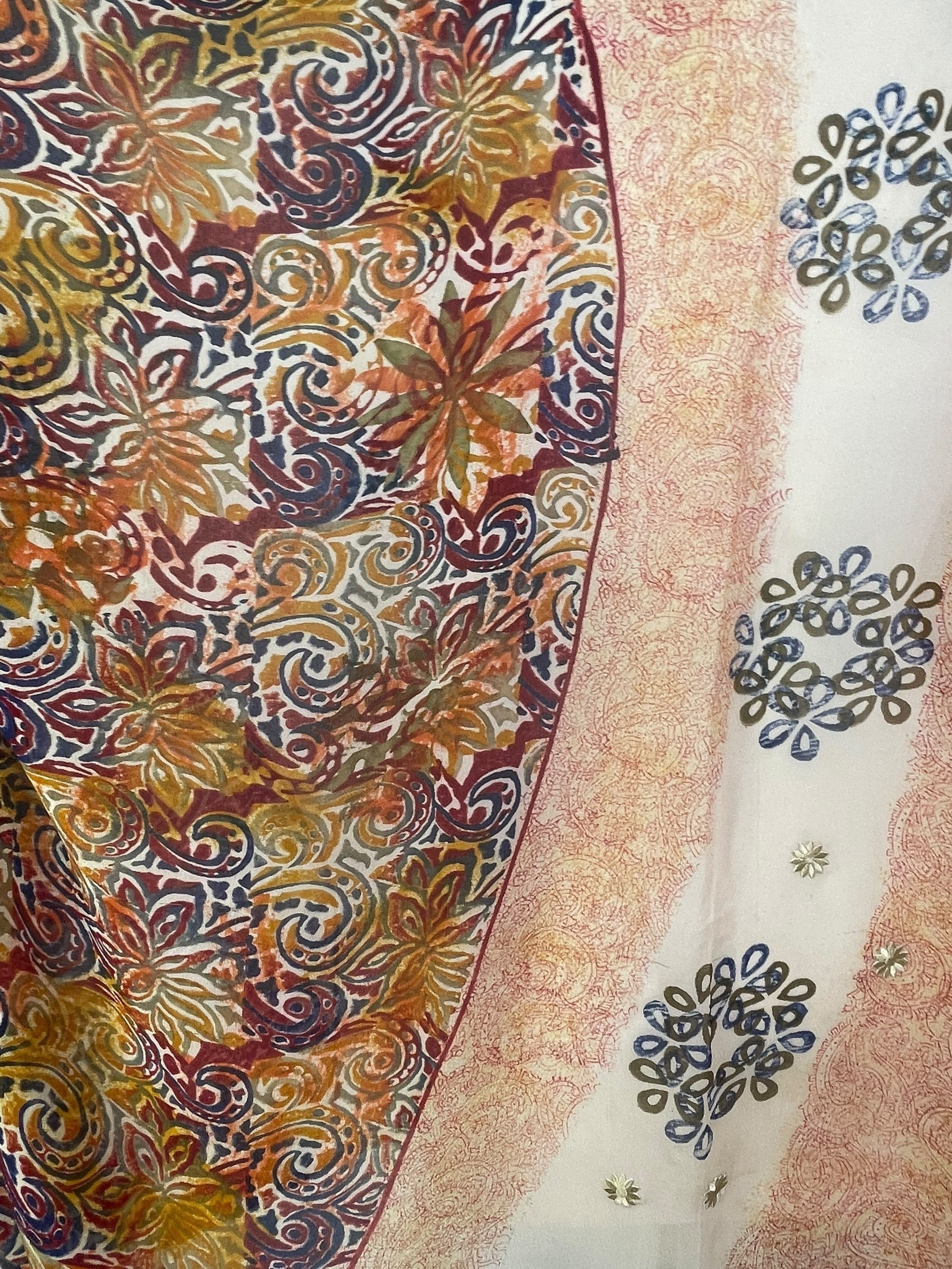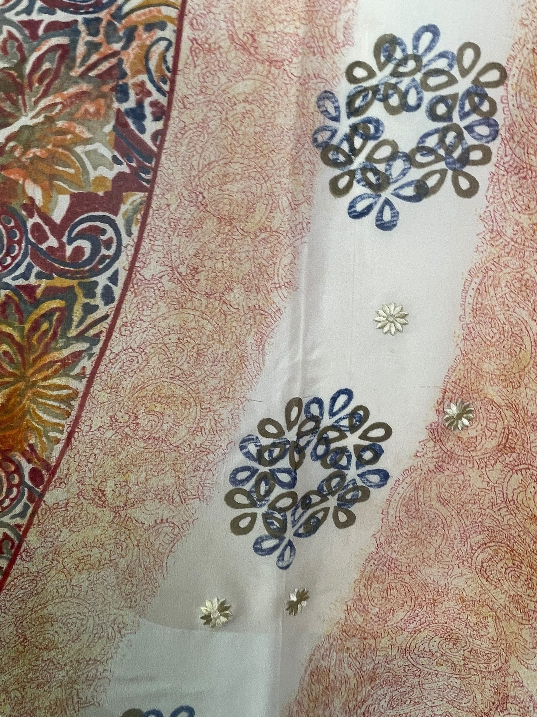 In Eastern philosophy, an Avatar is an incarnation that teaches how to evolve virtues of the past into the present. The Pure Upcycled Silk Avatar Collection is made from vintage pure silk saris, chosen and worn by women in the past to celebrate their lives.If you look very closely, you will see that the silks in this collection show some of the character of their previous incarnations through the appliqués that have been lovingly applied to bring new life to the fabric. This piece is a reminder that we are part of a collective journey to which we all add a little something.
