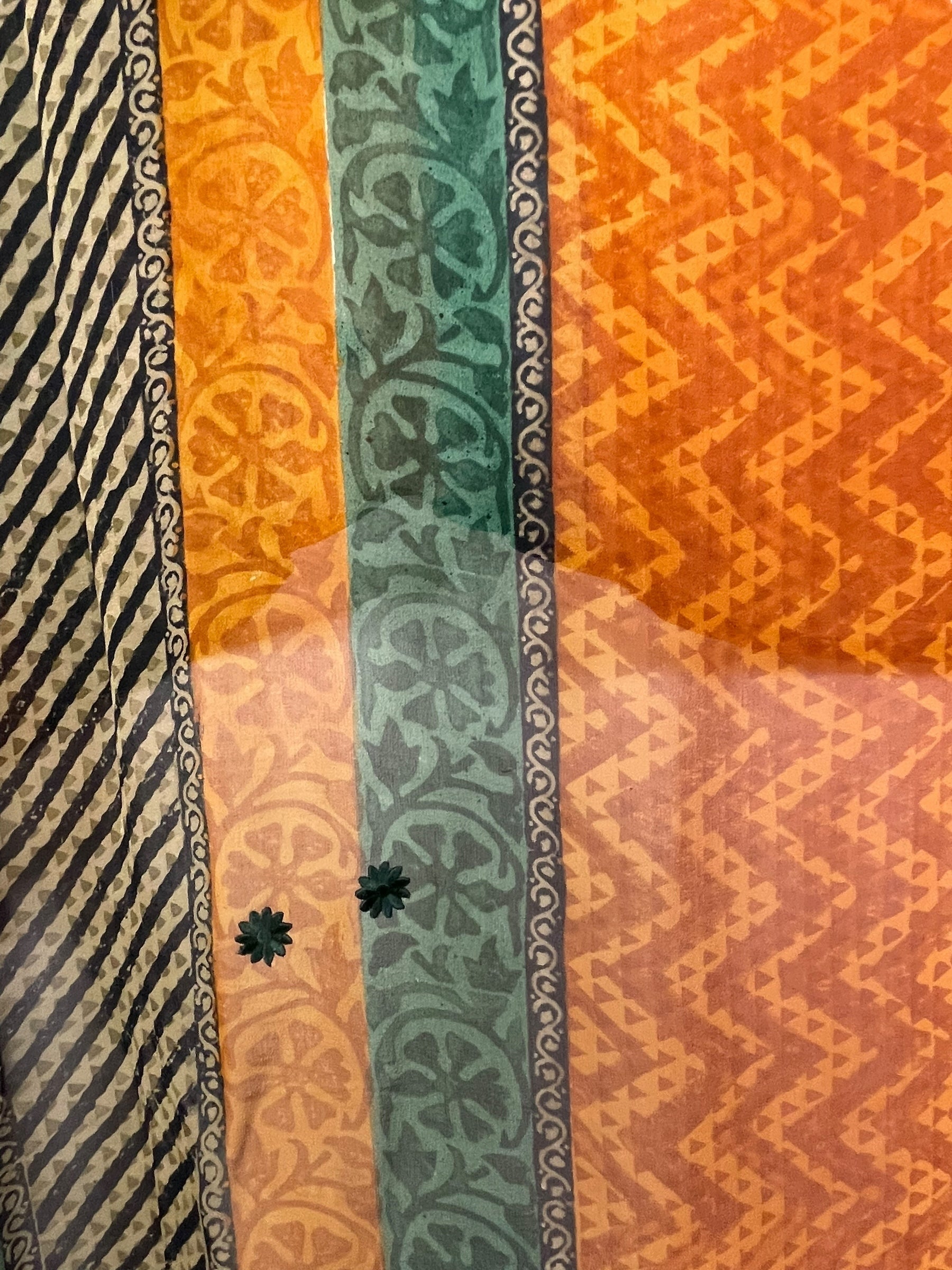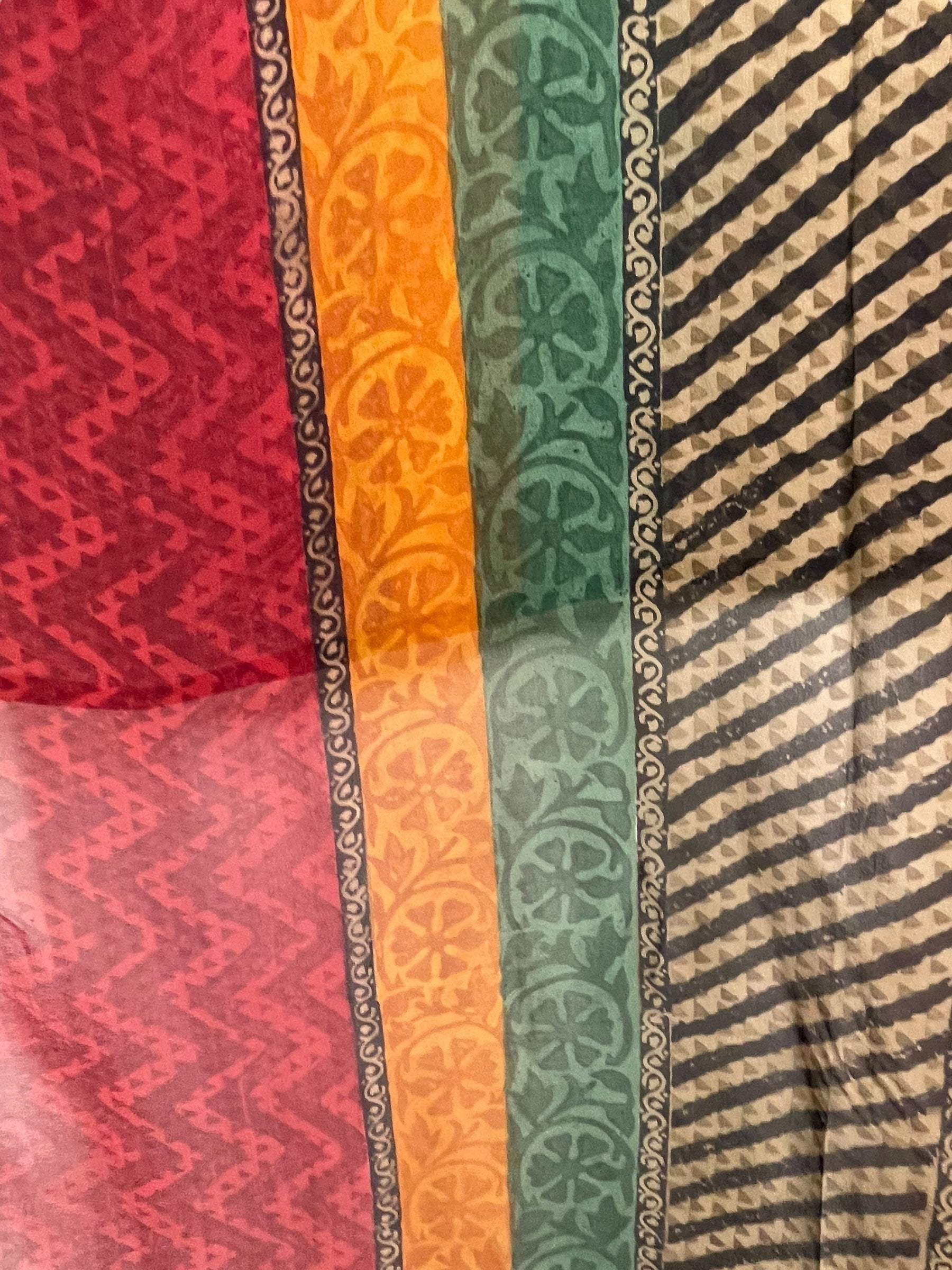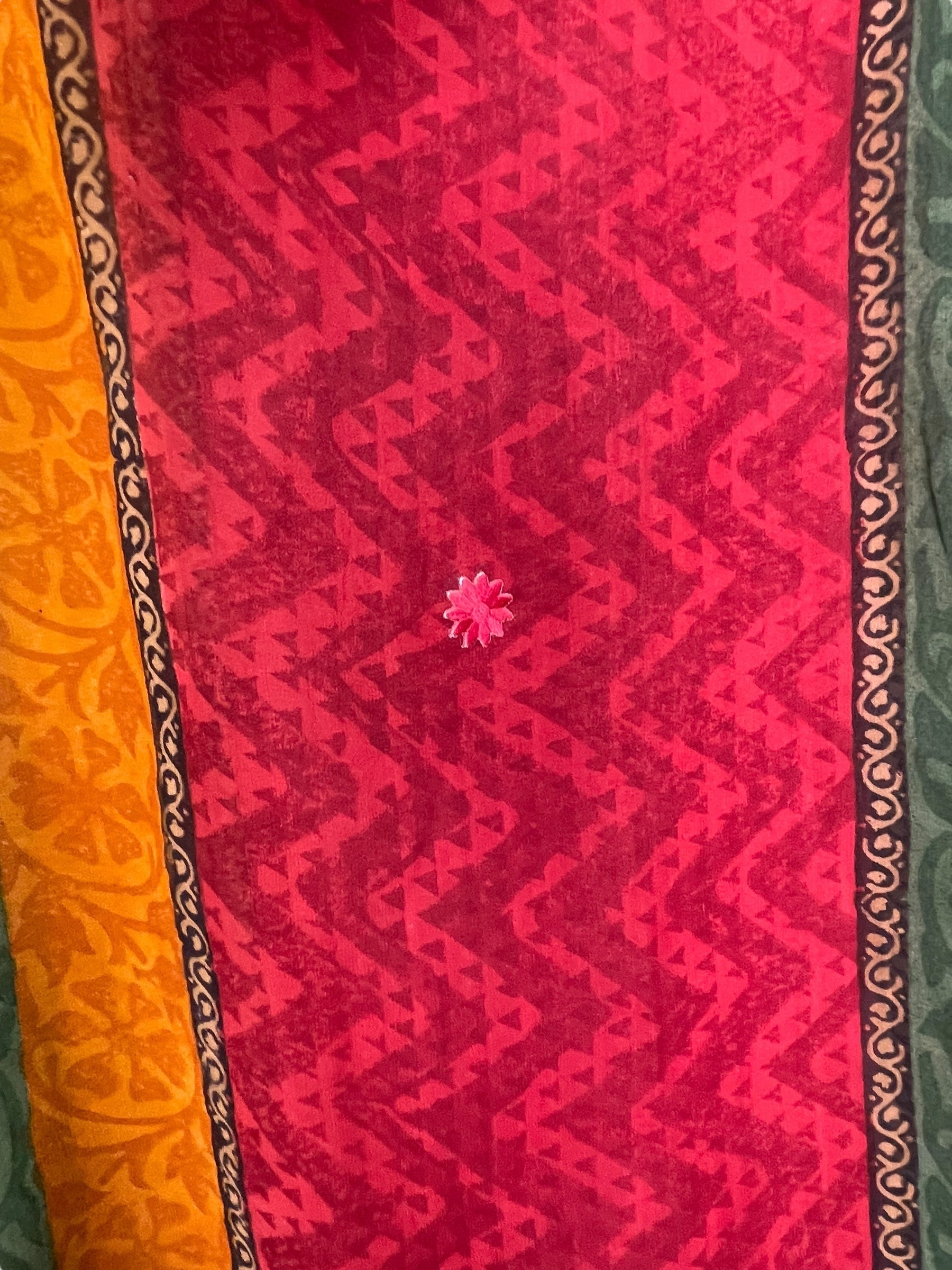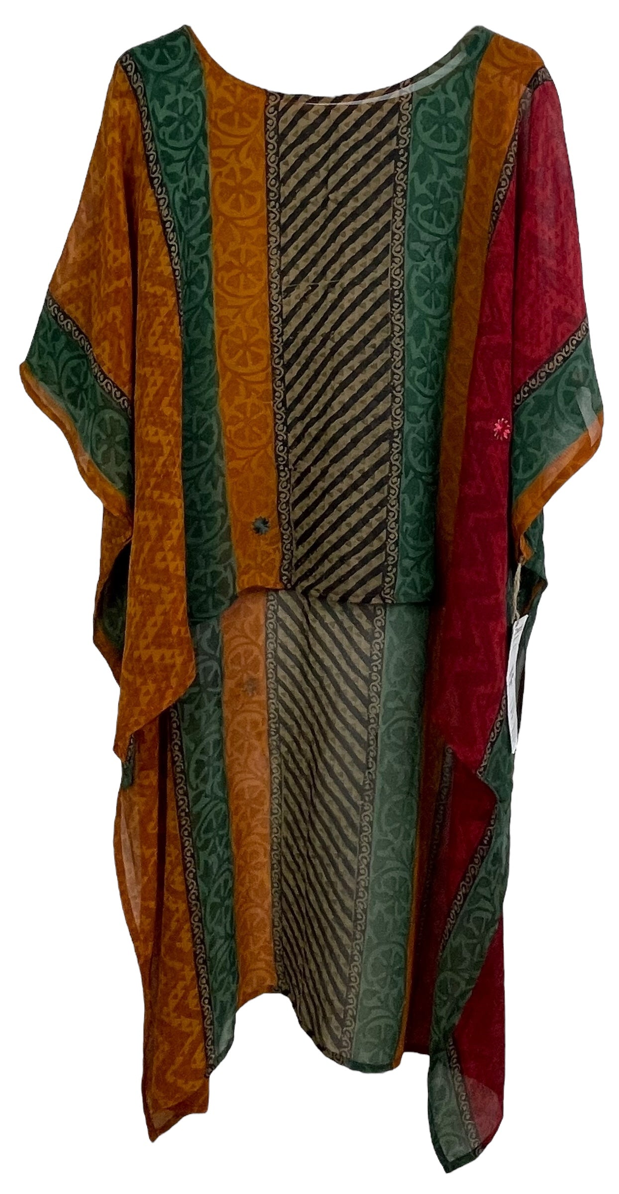 In Eastern philosophy, an Avatar is an incarnation that teaches how to evolve virtues of the past into the present. The Pure Upcycled Silk Avatar Collection is made from vintage pure silk saris, chosen and worn by women in the past to celebrate their lives.If you look very closely, you will see that the silks in this collection show some of the character of their previous incarnations through the appliqués that have been lovingly applied to bring new life to the fabric. This piece is a reminder that we are part of a collective journey to which we all add a little something.