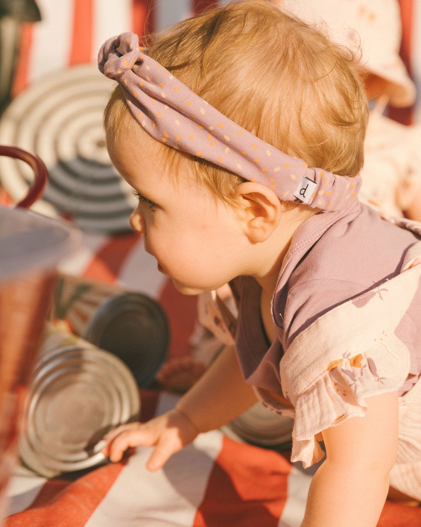 Our Printed Organic Cotton Headband Pear Seeds puts the perfect finishing touch on any look in our Pear Compote collection. Soft and stretchy, this headband features an elastic back, a bow on top, and a charming allover pear print.