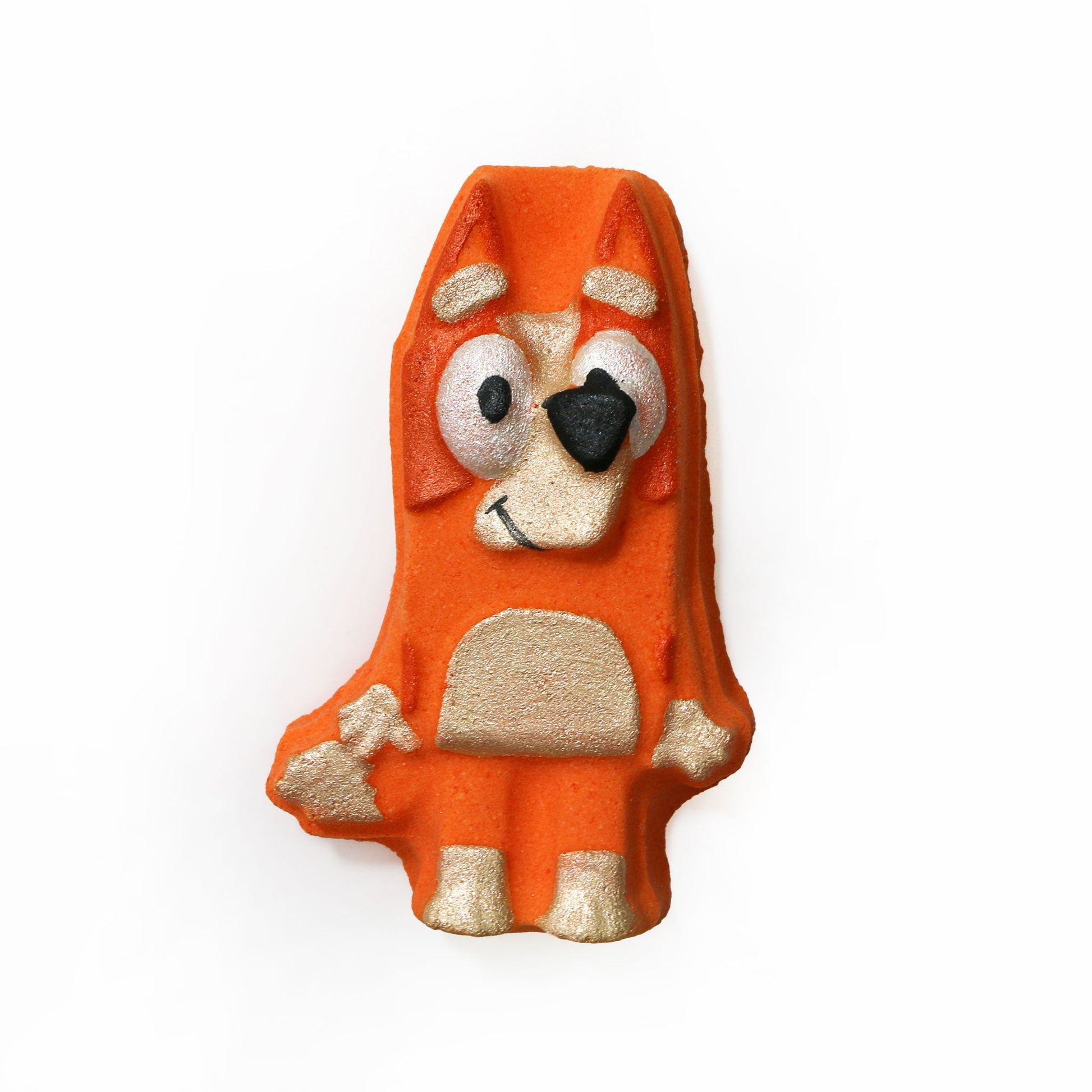 This orange pup bath bomb has a fruity aroma featuring notes of orange and vanilla complemented by hints of fresh cherries, strawberries, and raspberries, plus a subtle tang of citrus.
