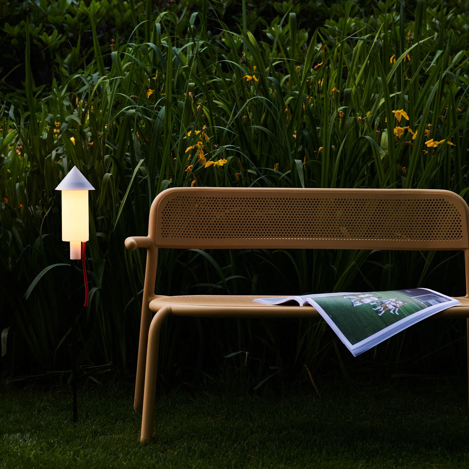 Enhance your outdoor space with the fun and functional Fatboy Racket la Surprise solar lamp. Shaped like a rocket, this light automatically illuminates at dusk with a cozy, warm glow and switches off after six hours, delivering an effortless and eco-friendly lighting solution for your garden, rooftop, or balcony.