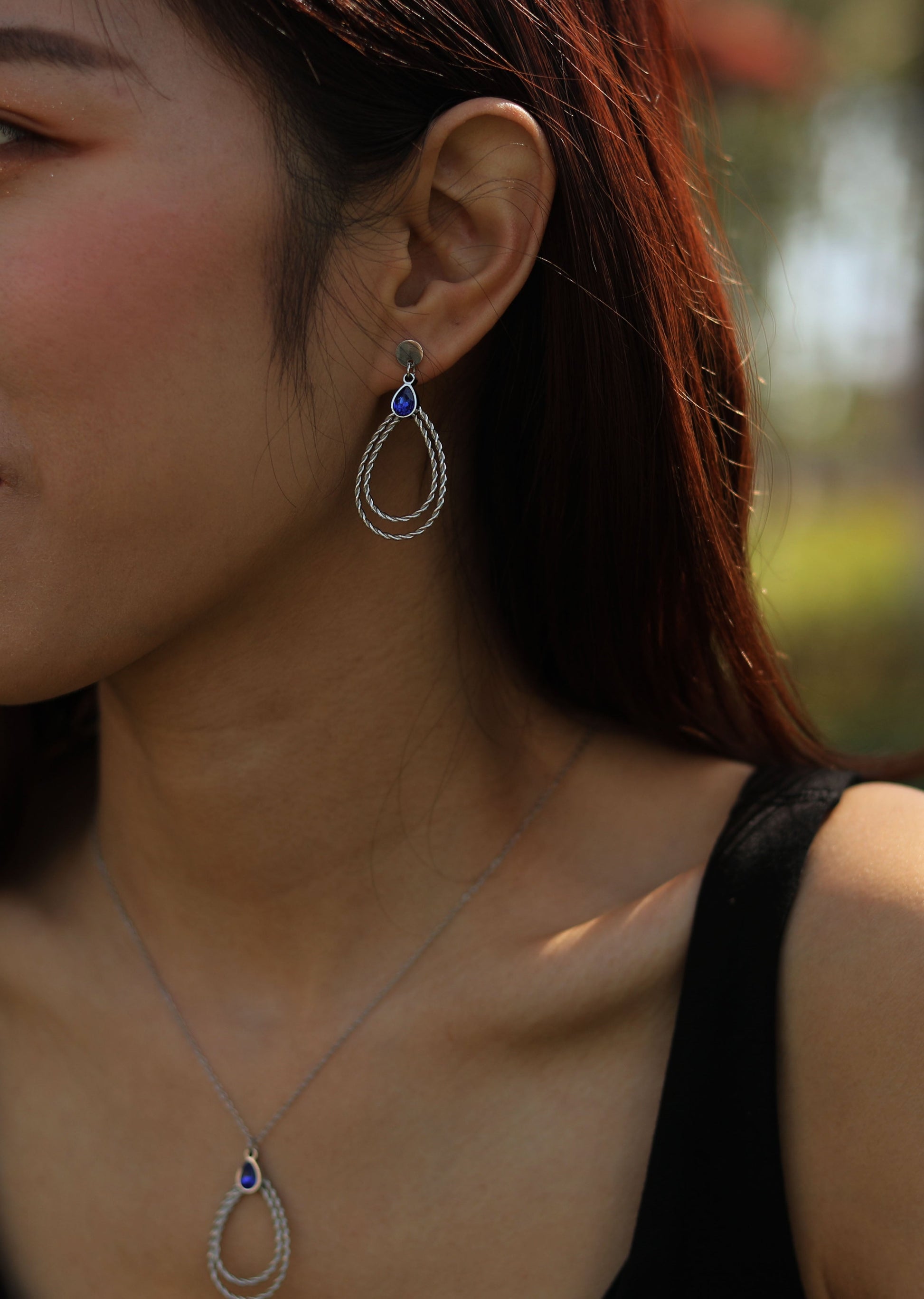 A twin set of minimalist oval hoop earrings with a teardrop blue zirconia adornment. A welcome burst of style to suit any outfit.