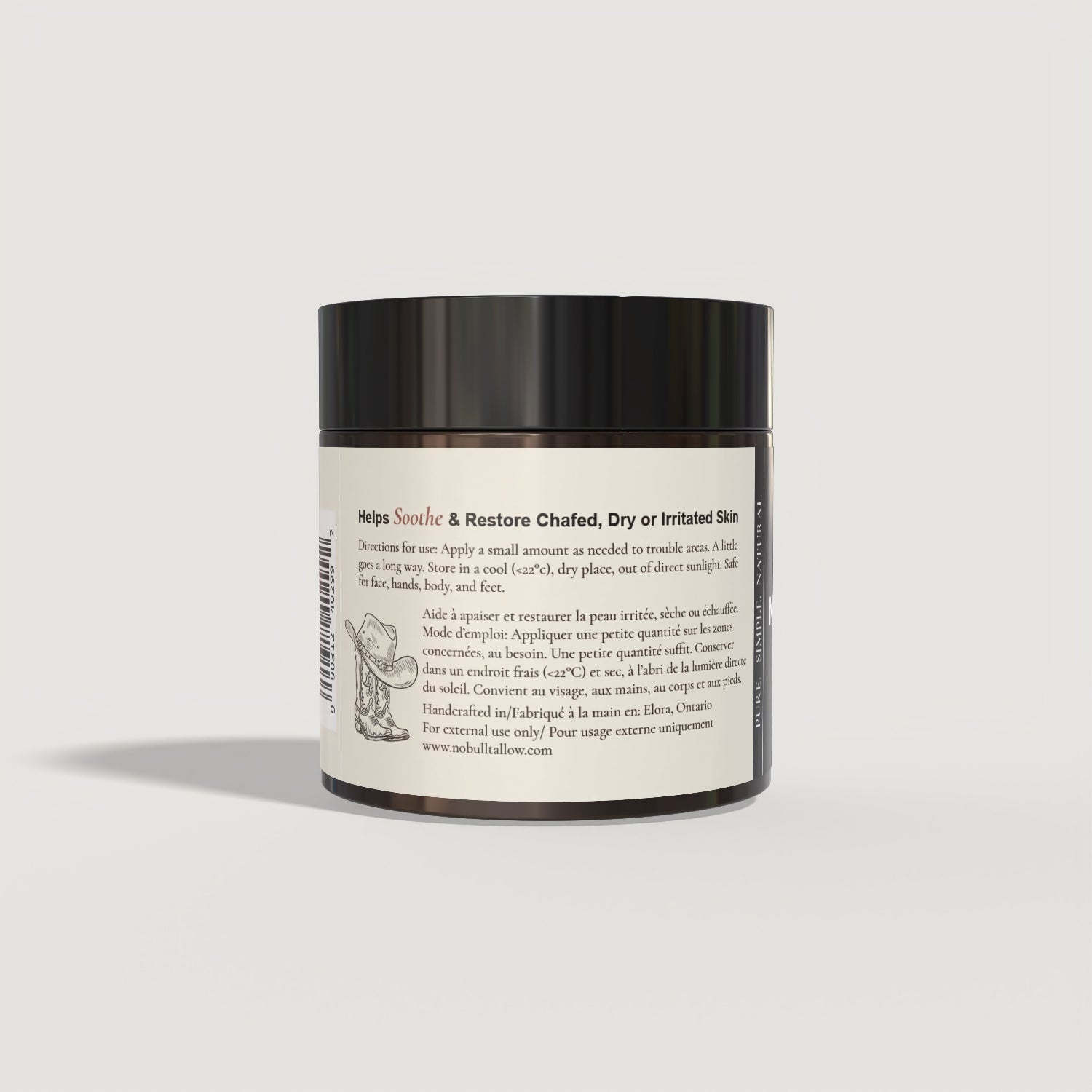 We start with dry-rendered, grass-fed suet—then run it through our Triple Purification Process™ to remove impurities, clarify scent, and preserve skin-nourishing nutrients. The result is a smooth, stable balm that performs when skin needs it most.