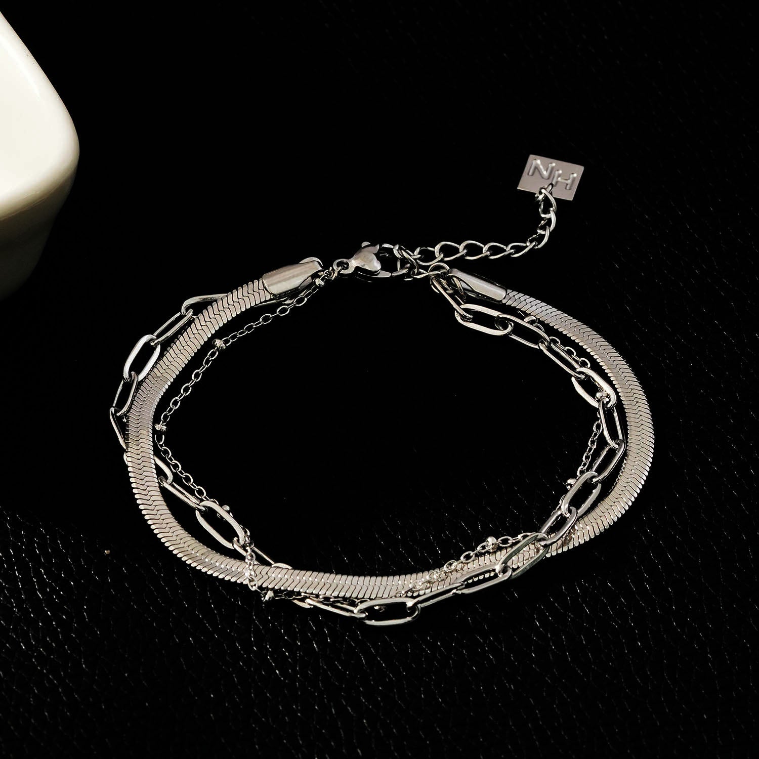 REINEDA: Triple Stacked White Gold (Silver Toned) Bracelet