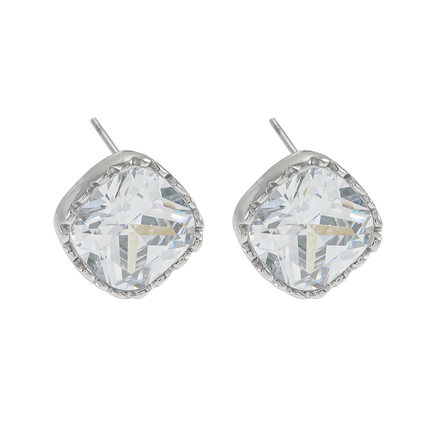 These simple yet classically glam square studs, with an ornate casing in white gold (silver toned), & adored with a single moissanite gemstone will rock your look in cool elegance.