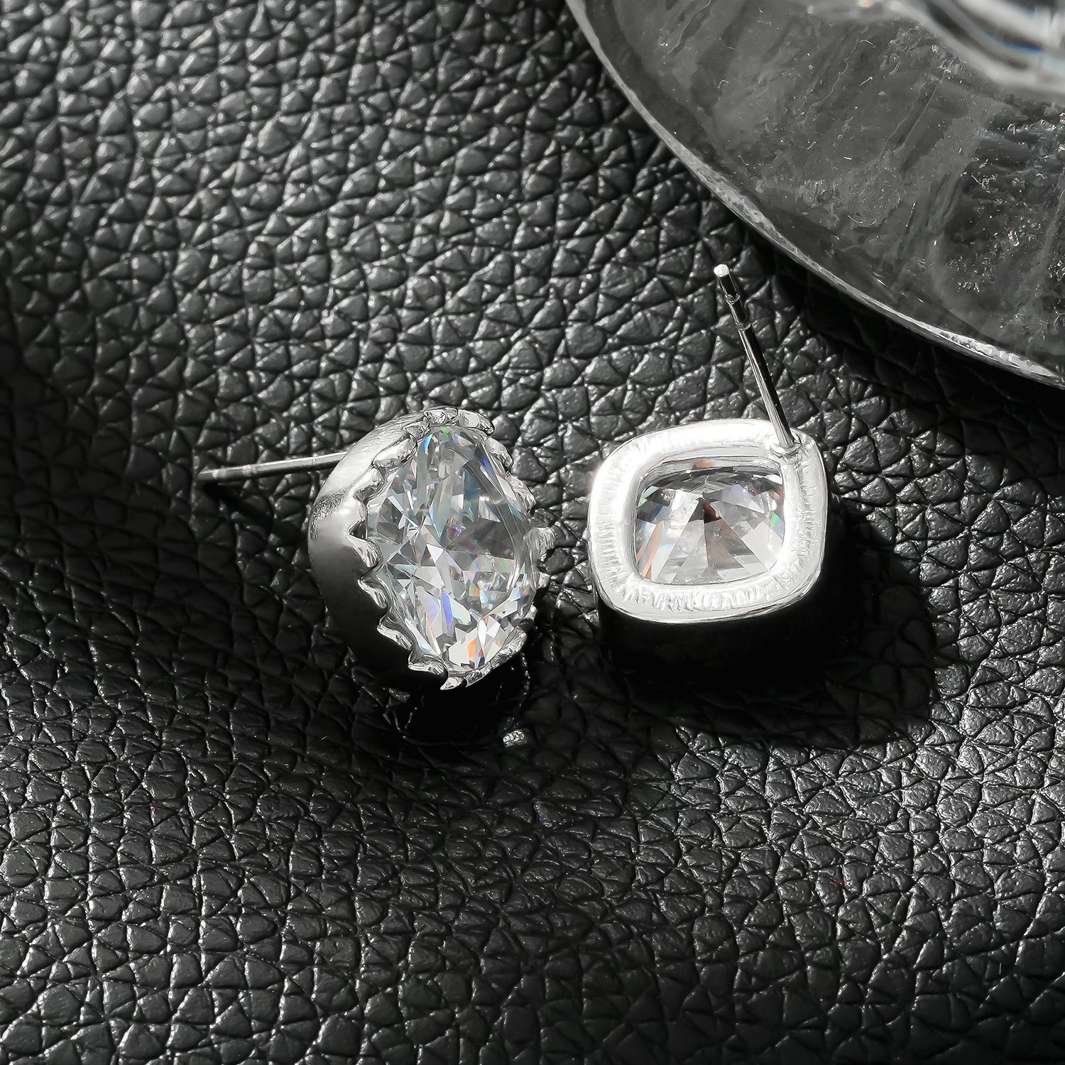 RICCA Silver: Moissanite (Diamond Alternative) Square Shaped Ornate Cased Essential Daily Studs.