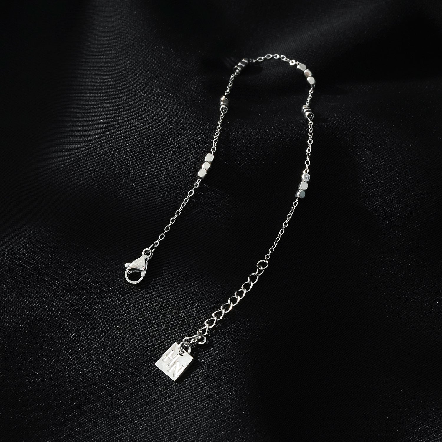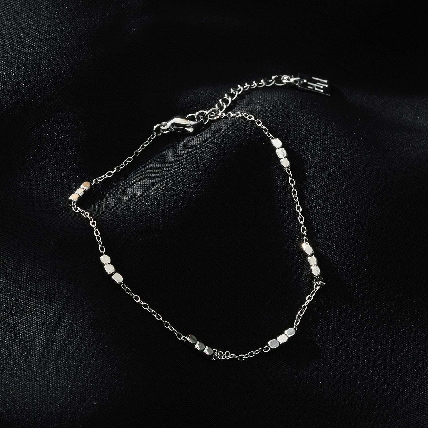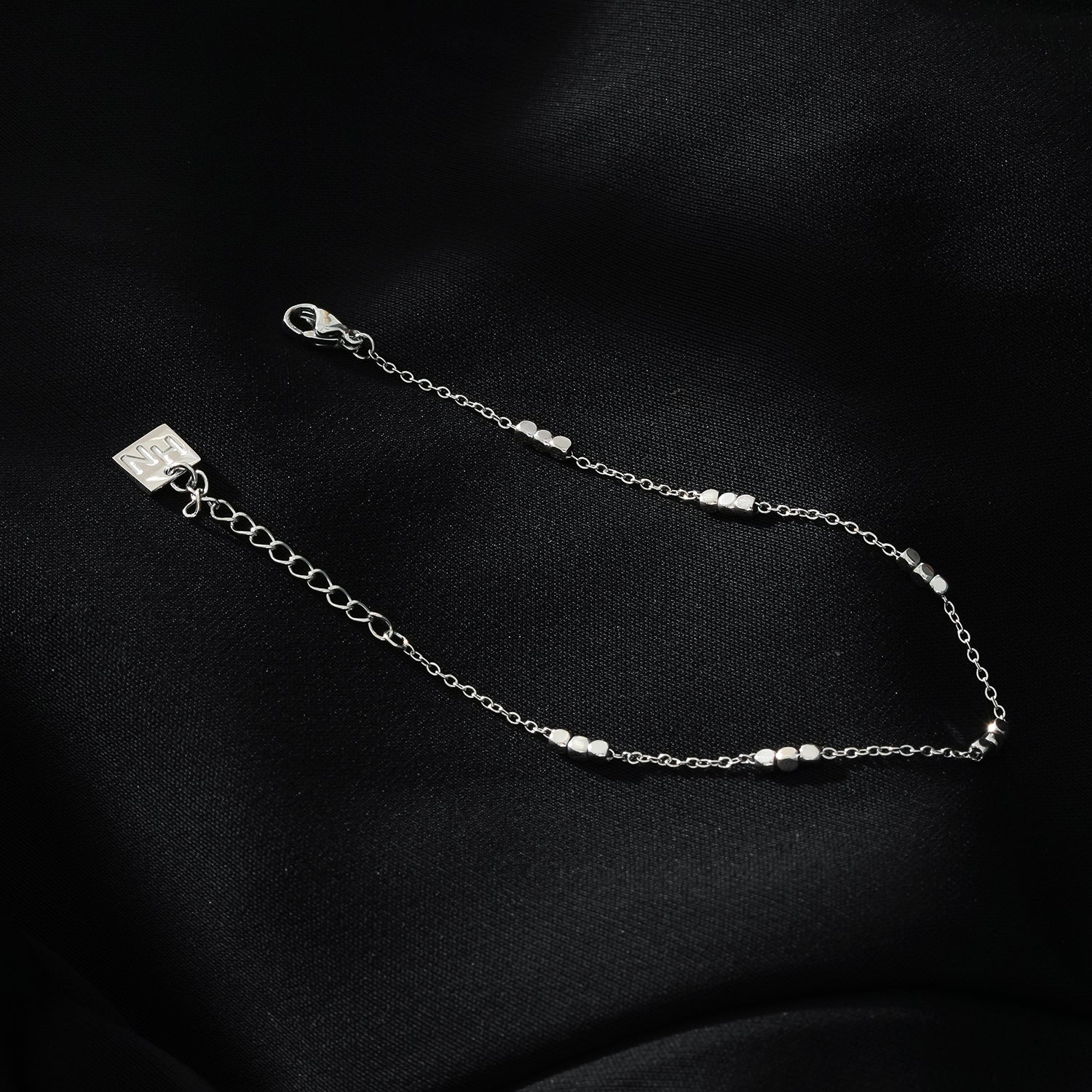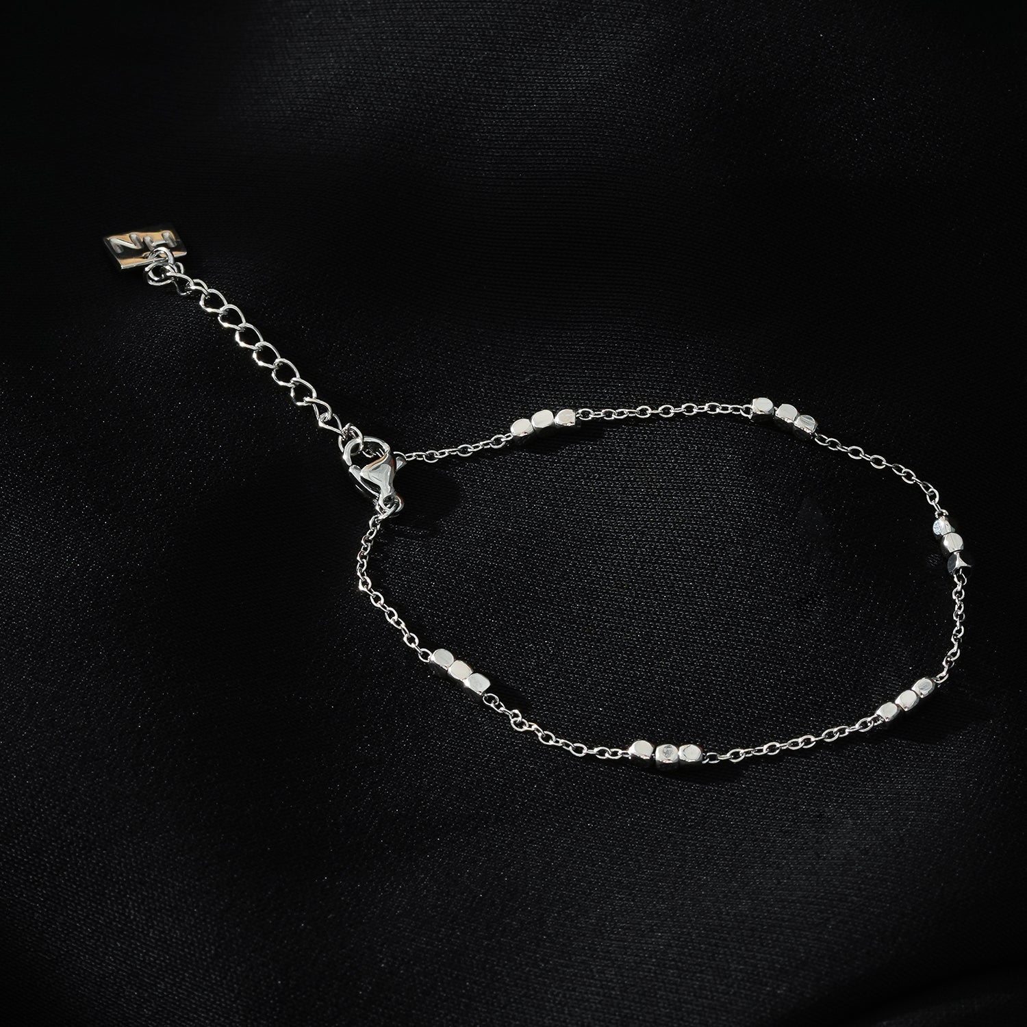 RITIKA: Tiny Square-Beads Dainty Chain Bracelet in White Gold (Silver Toned)