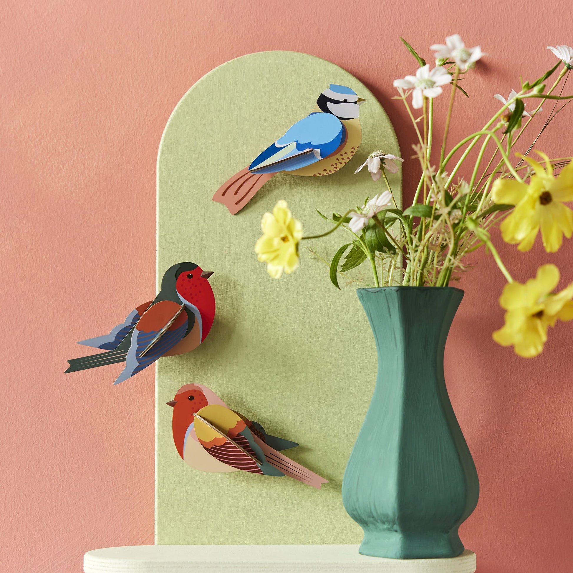 The Robins by Studio Roof capture the essence of garden birds with their vibrant and lively design. These 3D wall art pieces bring the charming presence of robins into your home, adding a touch of color and joy to any space. Made from recycled cardboard and printed with vegetable inks, these eco-friendly birds embody Studio Roof's commitment to sustainability and creativity.