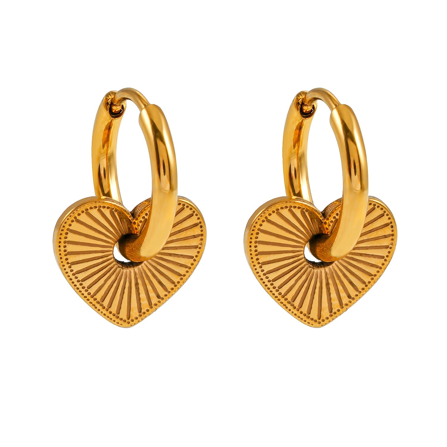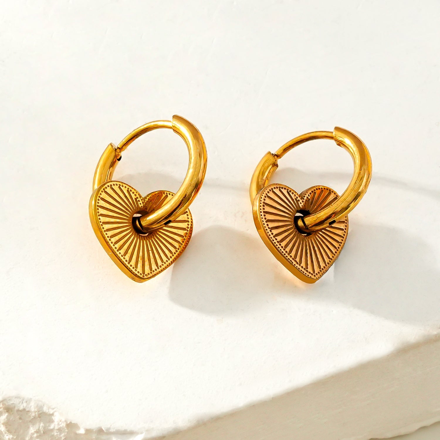 Romantic Heart Charm Hoop Earrings – A Symbol of Everlasting Love. Style ENDEAR in Gold