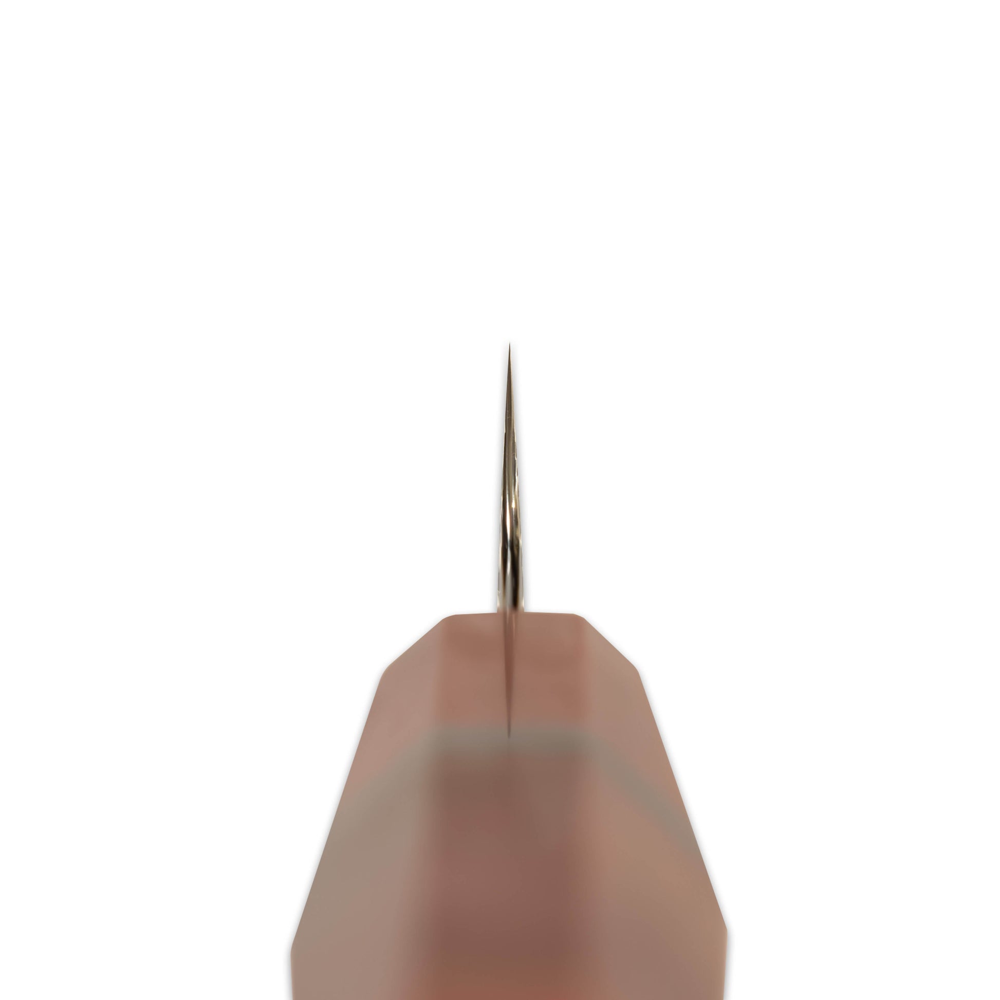 The blade is made of new material "SPG STRIX®" that embodies traditional Japanese steel forging techniques. The new material "SPG STRIX®" has the same workability and durability as conventional stainless steel powder steel, but has a hardening hardness of HRC65, the highest level of hardness of stainless steel blade steel. It exhibits optimal performance for knives, such as "best sharpness brought by high hardness," "ease of sharpening and edge attachment like carbon steel," and "excellent corrosion resistance and toughness."
