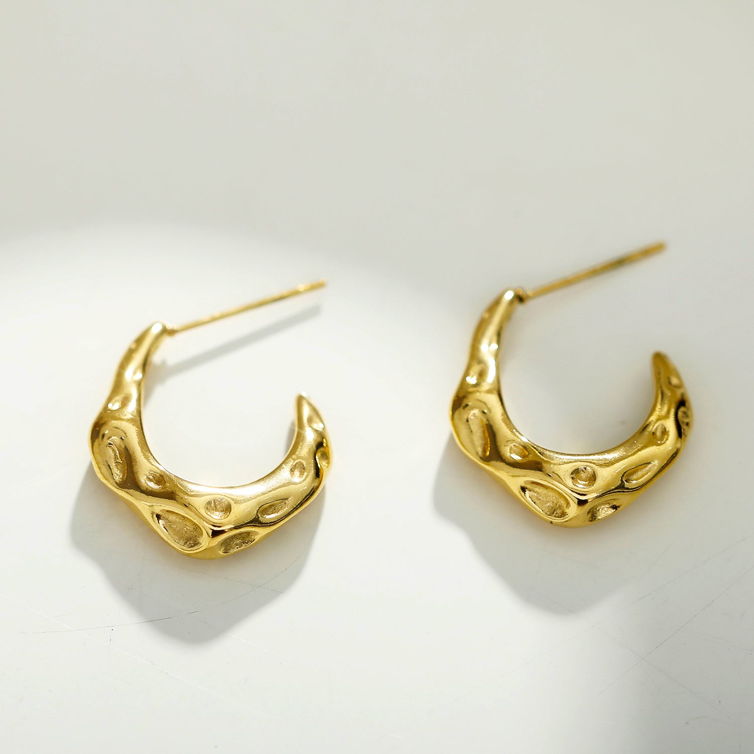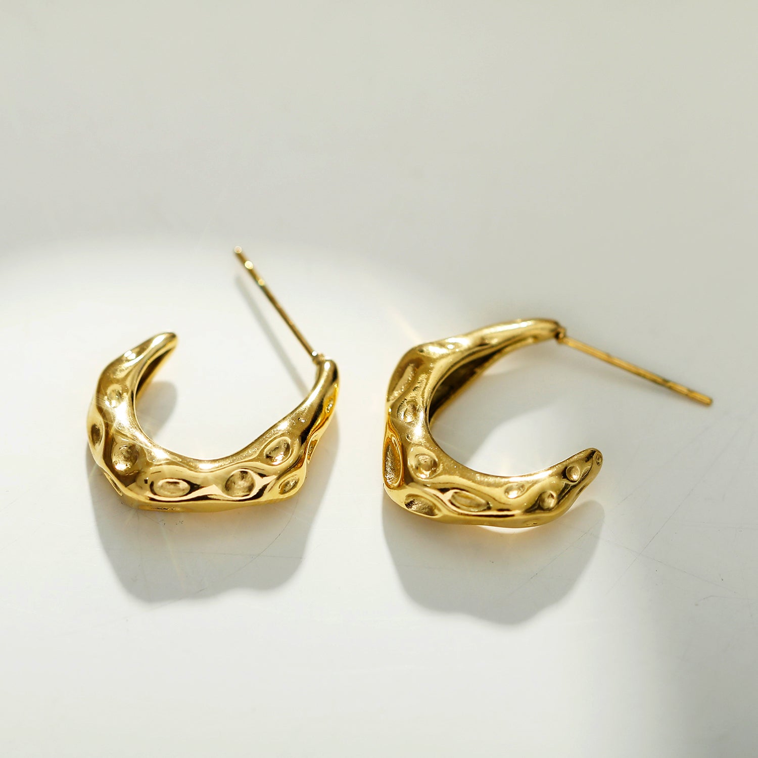 SADE Hammered Finish Mini Hoop Gold Earrings