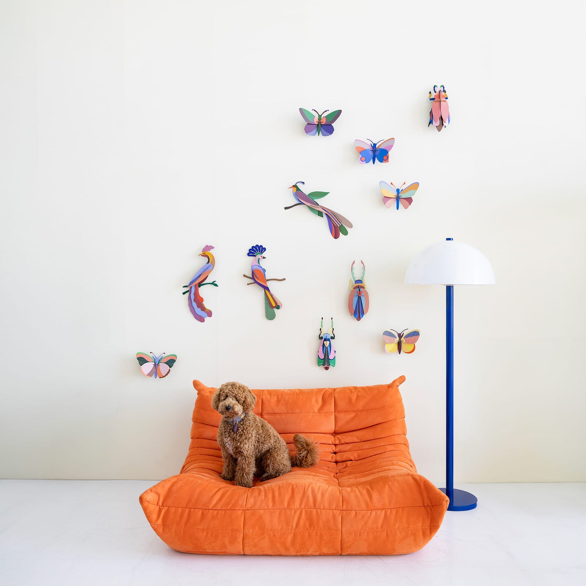 The Sakura Beetle by Studio Roof brings vibrant, nature-inspired art into your home with its bold colors and intricate design. Crafted from recycled cardboard and printed with vegetable inks, this flamboyant beetle looks as though it has stepped off the runway.