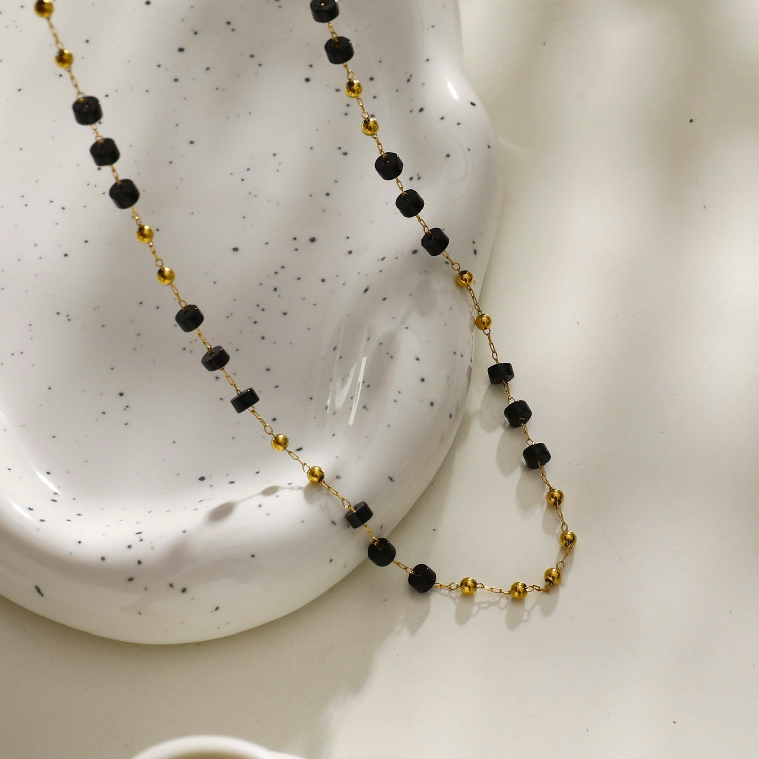 SANTA CRUZ Black: Gold & Black Onyx Beaded Chain Necklace