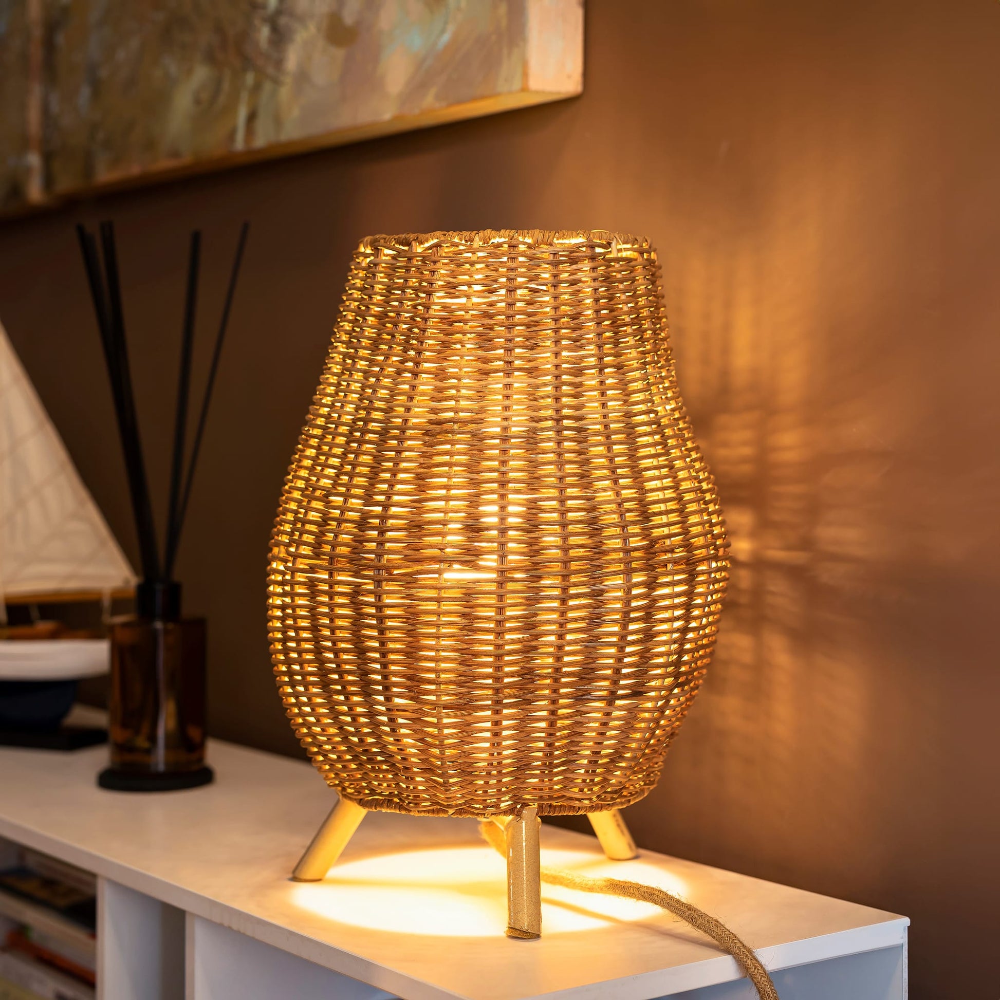 INDOOR ONLY: the Saona decorative lamp is hand braided with natural fibers. This lamp is the perfect complement to illuminate any space in your home or garden giving it a natural touch.