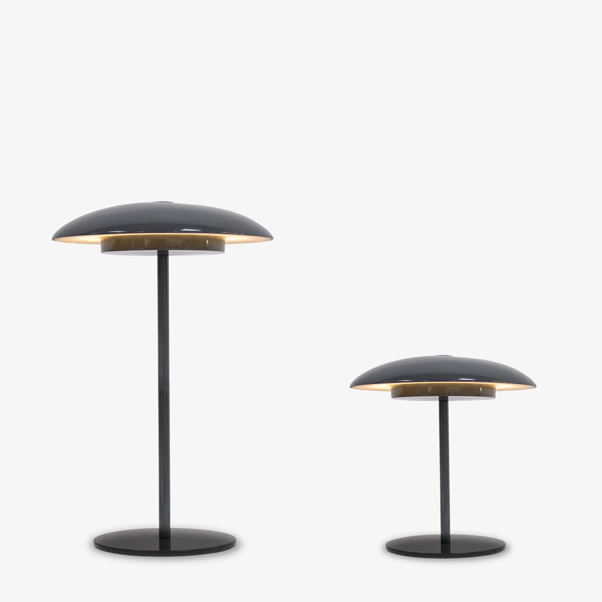 Sardinia is a cordless table lamp, made of painted iron and available in two different colours: white or anthracite. Its design of simple and rounded lines is inspired by the Sardinian coast.