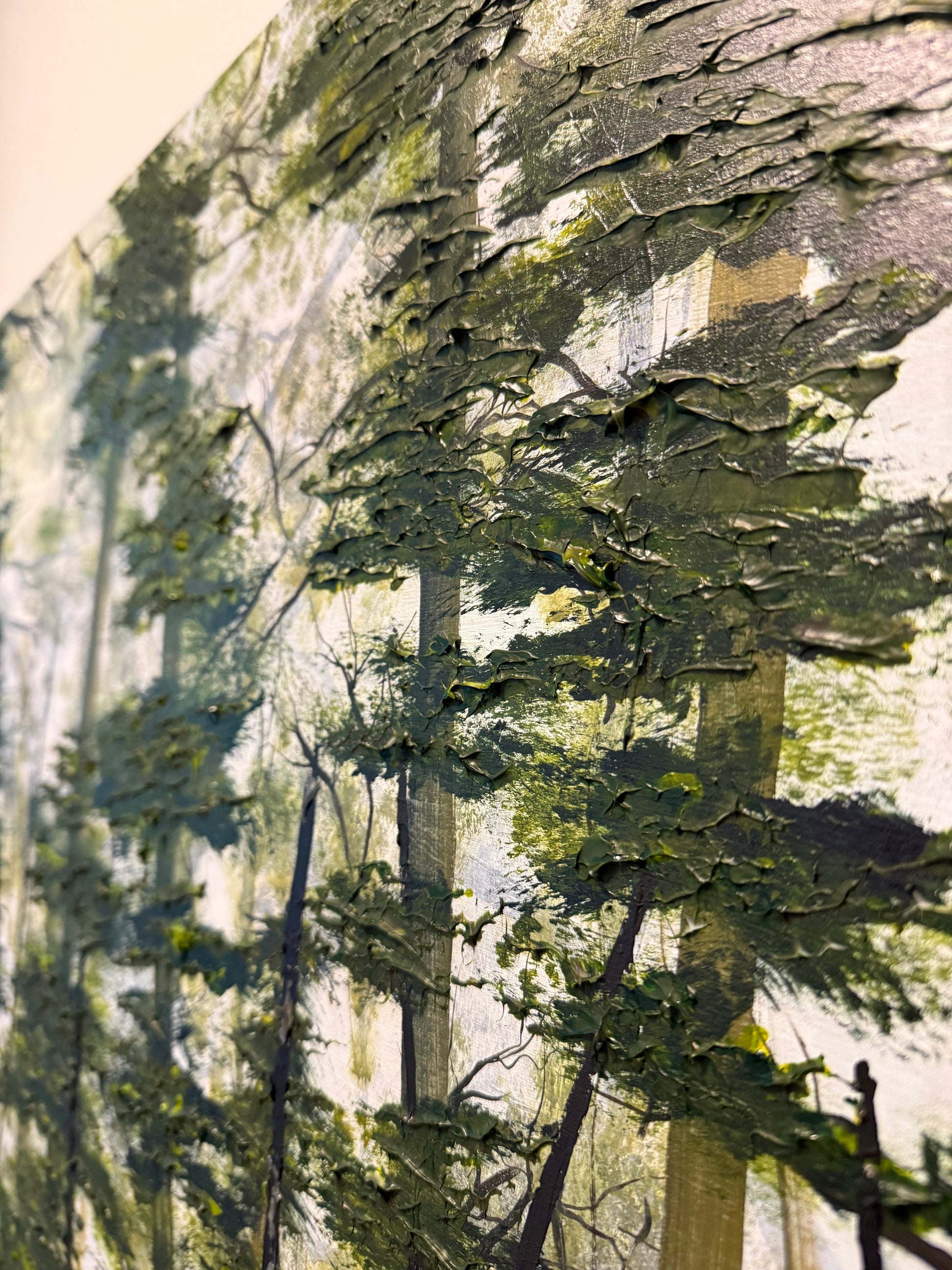 Introducing Pensacola, the elegant birch panel hand painted with acrylic and various mediums. Experience the depth and detail of abstract art with crackle effects, glass beads, and silver and gold leaf. Add a touch of sophistication and exclusivity to your space.