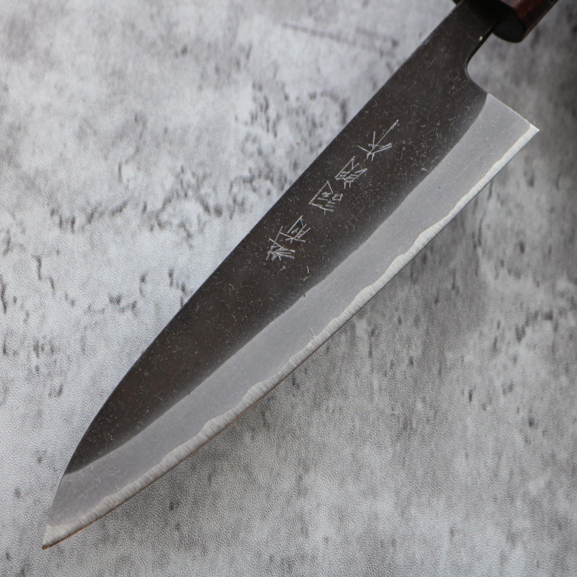 We're super excited to have these knives made by Shiro Kamo in the shop. These aogami super gyuto are the first to arrive at the shop from an order we placed long ago and they were certainly worth waiting for. They are slightly blade heavy but relatively light overall. The aogami super core steel sharpens in a flash, takes a screaming sharp edge and will hold it for a long time. That paired with the stainless cladding will make it a breeze to take care of.