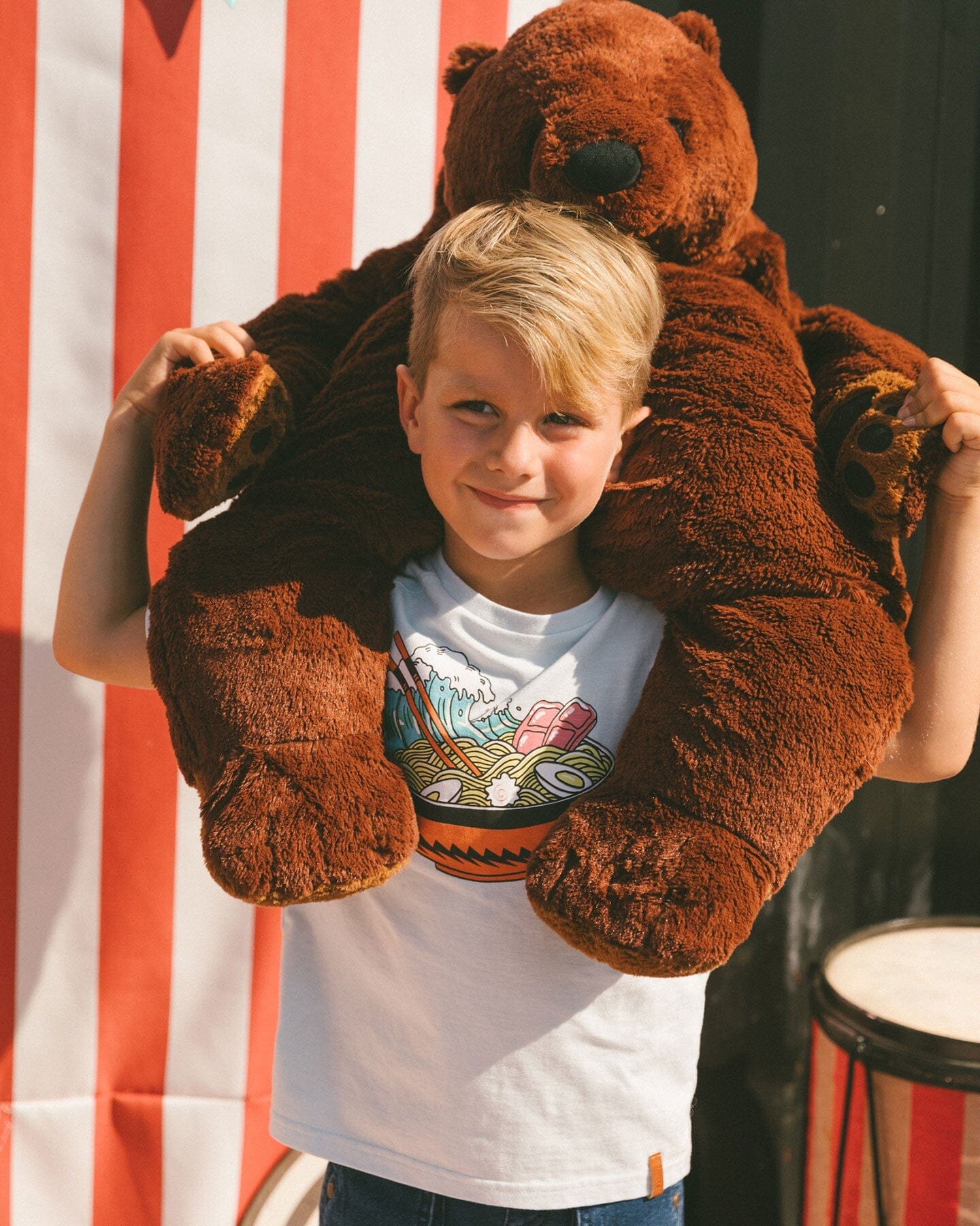 He'll look oh-so-cool this spring and summer in our Short Sleeve Graphic Tee Blue and Ramen. This tee is made from soft stretch cotton and features a relaxed fit with short sleeves, a crew neckline, and forward shoulder seams. A ramen bowl and wave print on the chest adds playful, distinctive style!