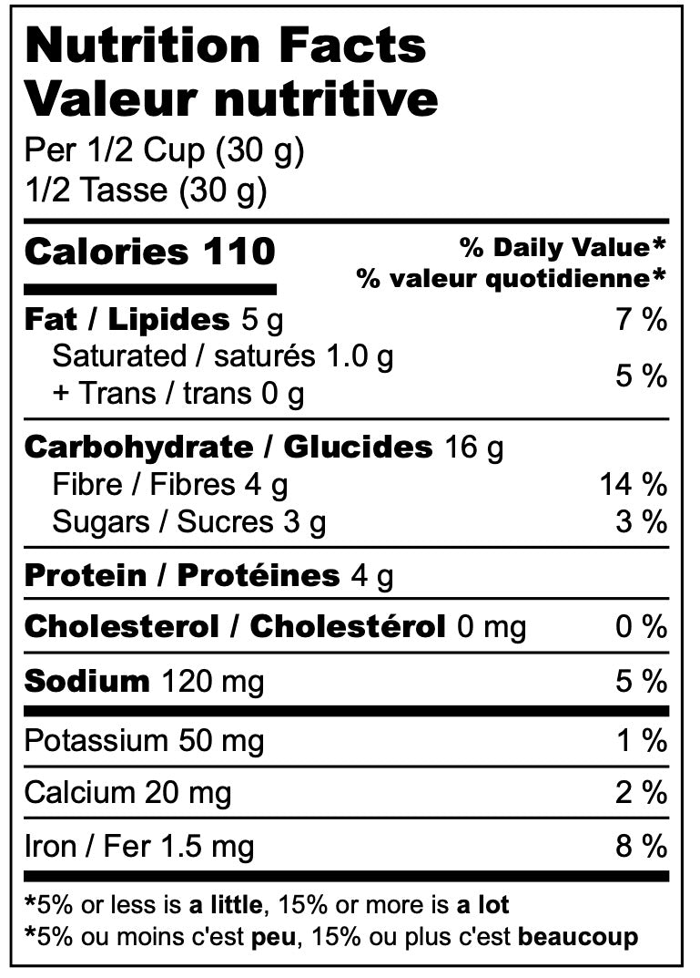 INGREDIENTS: Organic Gluten Free Oats, Pumpkin Seeds, Chicory Root Fibre, Sugars (Organic Maple Syrup), Water, Organic Quinoa, Almonds, Arrowroot Flour, Avocado Oil, Onion Powder, Sichuan Peppercorn, Sea Salt, Nutritional Yeast