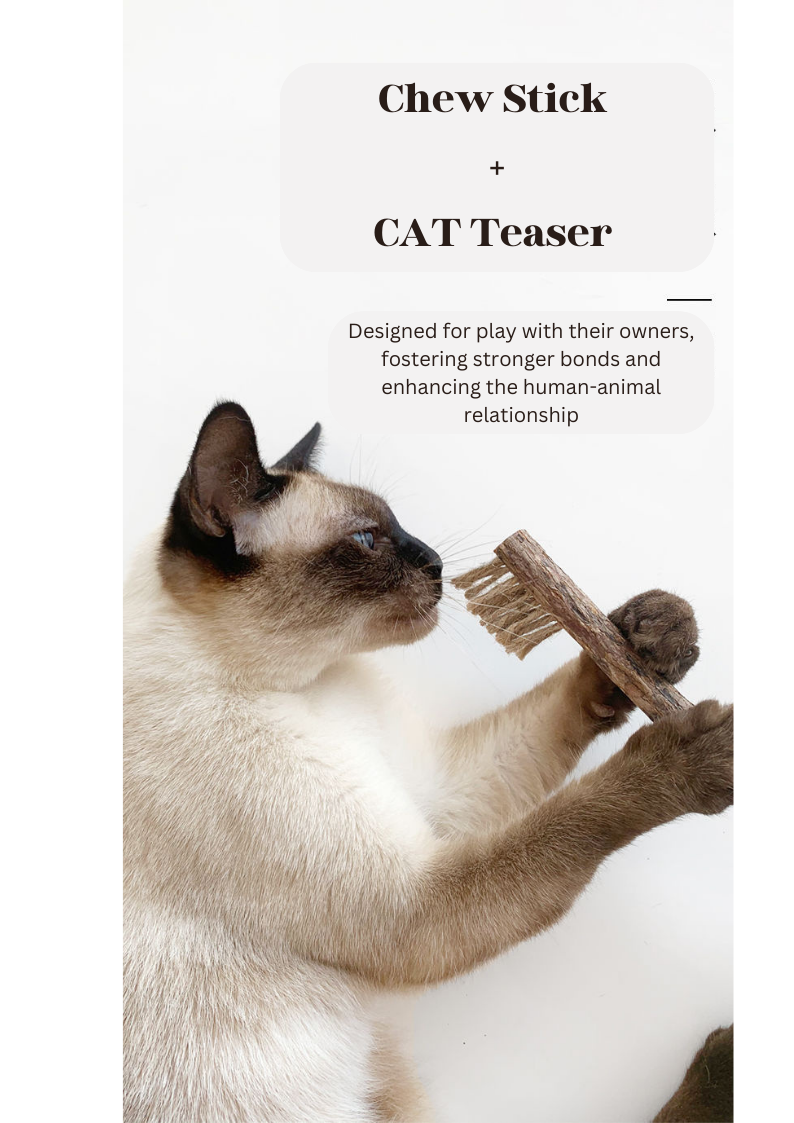 - Dual-Purpose Design: This toy serves as both a chew stick and a cat teaser. The silvervine stick satisfies your cat’s natural chewing instincts, while the attached bottle of silvervine powder enhances the toy’s appeal.