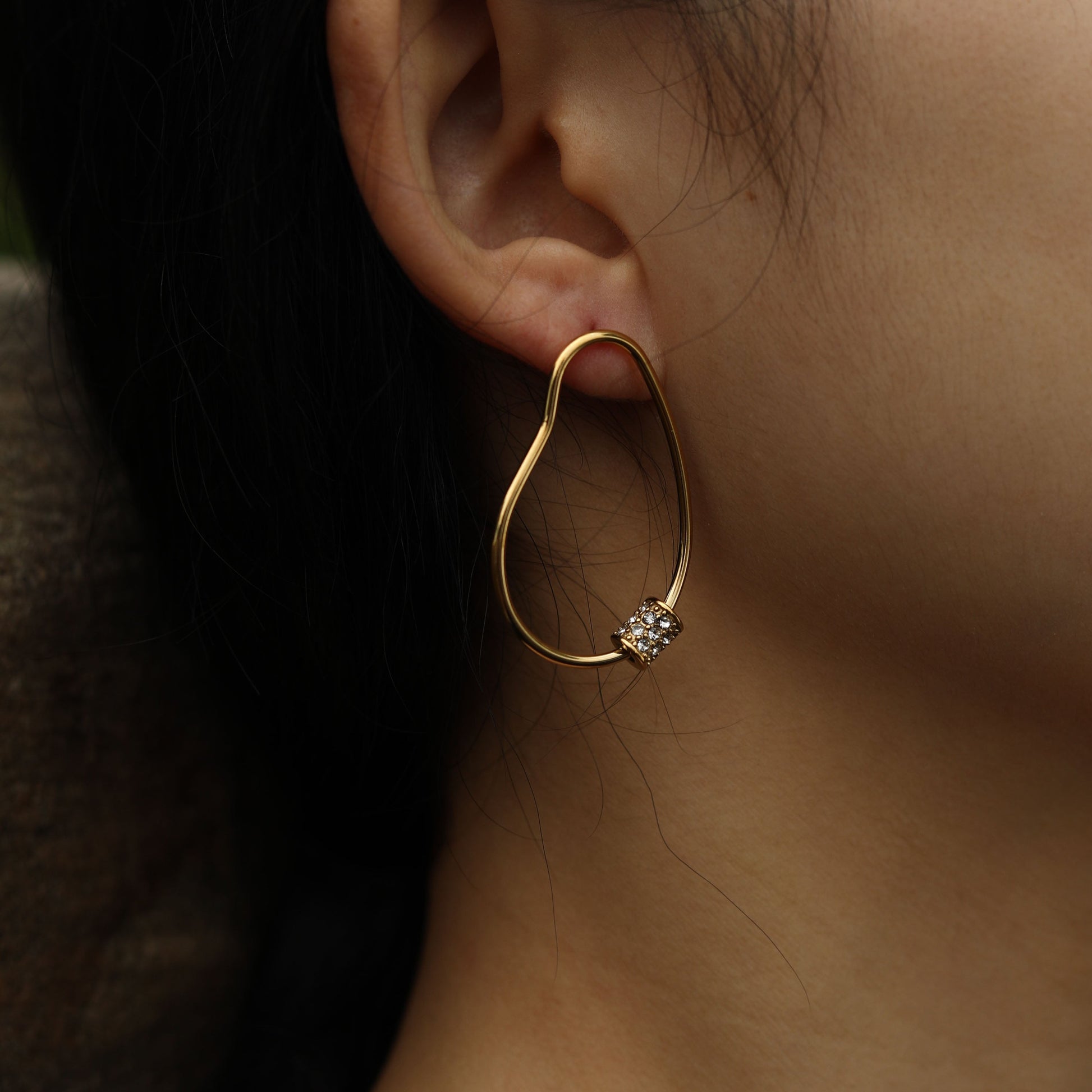 SIMAN Irregular Shaped Pavé Zirconia accented Hoop Earrings in Gold