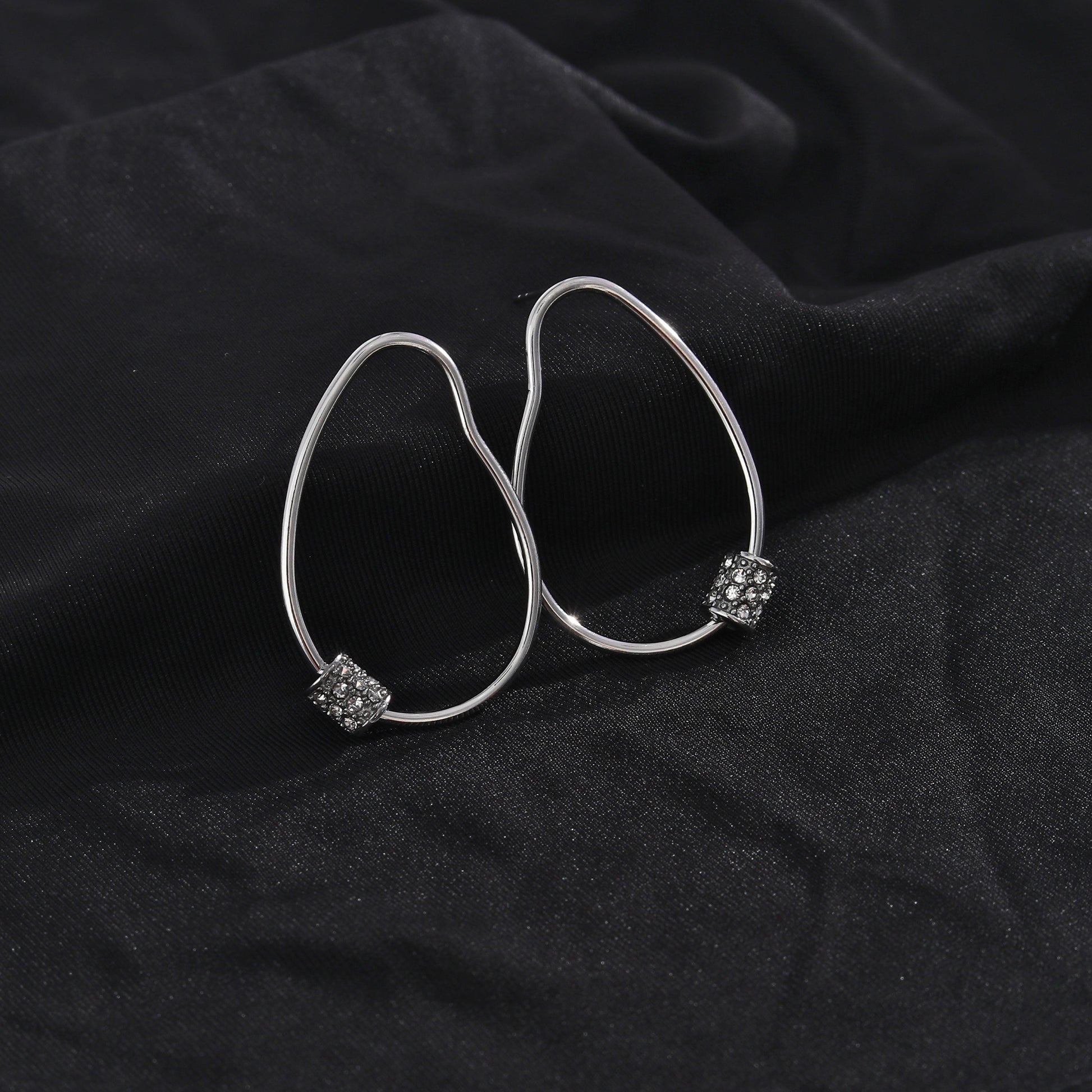 SIMAN Irregular Shaped Pavé Zirconia accented Hoop Earrings in Silver