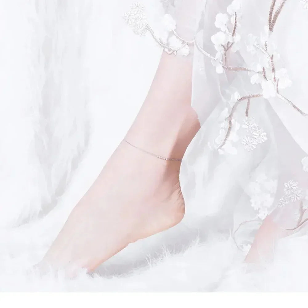 Simple Essential Bead Link Anklets - 925 Sterling Silver Bracelet For Foot Jewelry