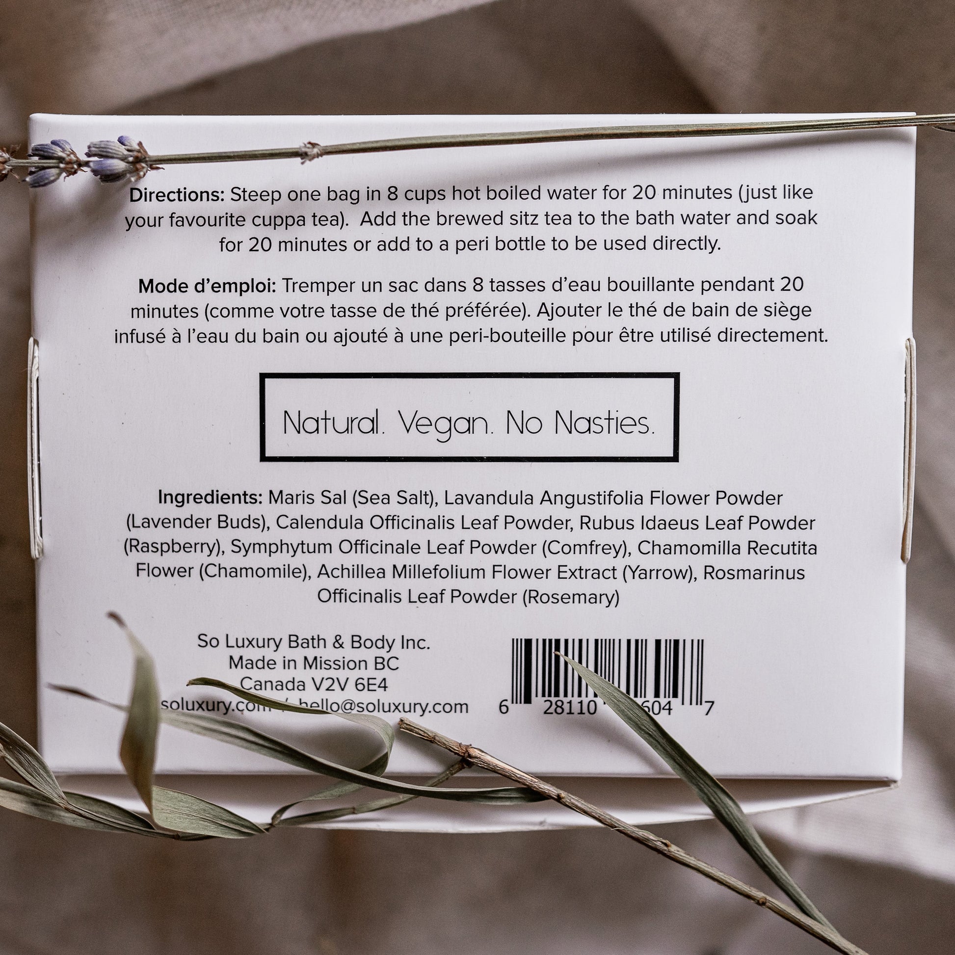 We have selected the most fragrant and beneficial herbs for our Sitz Bath Tea blend. Sea salt, lavender, calendula, raspberry leaf, comfrey, chamomile, yarrow and rosemary create a beautiful floral aroma for anyone looking to have a relaxing soak, not just for new mamas.