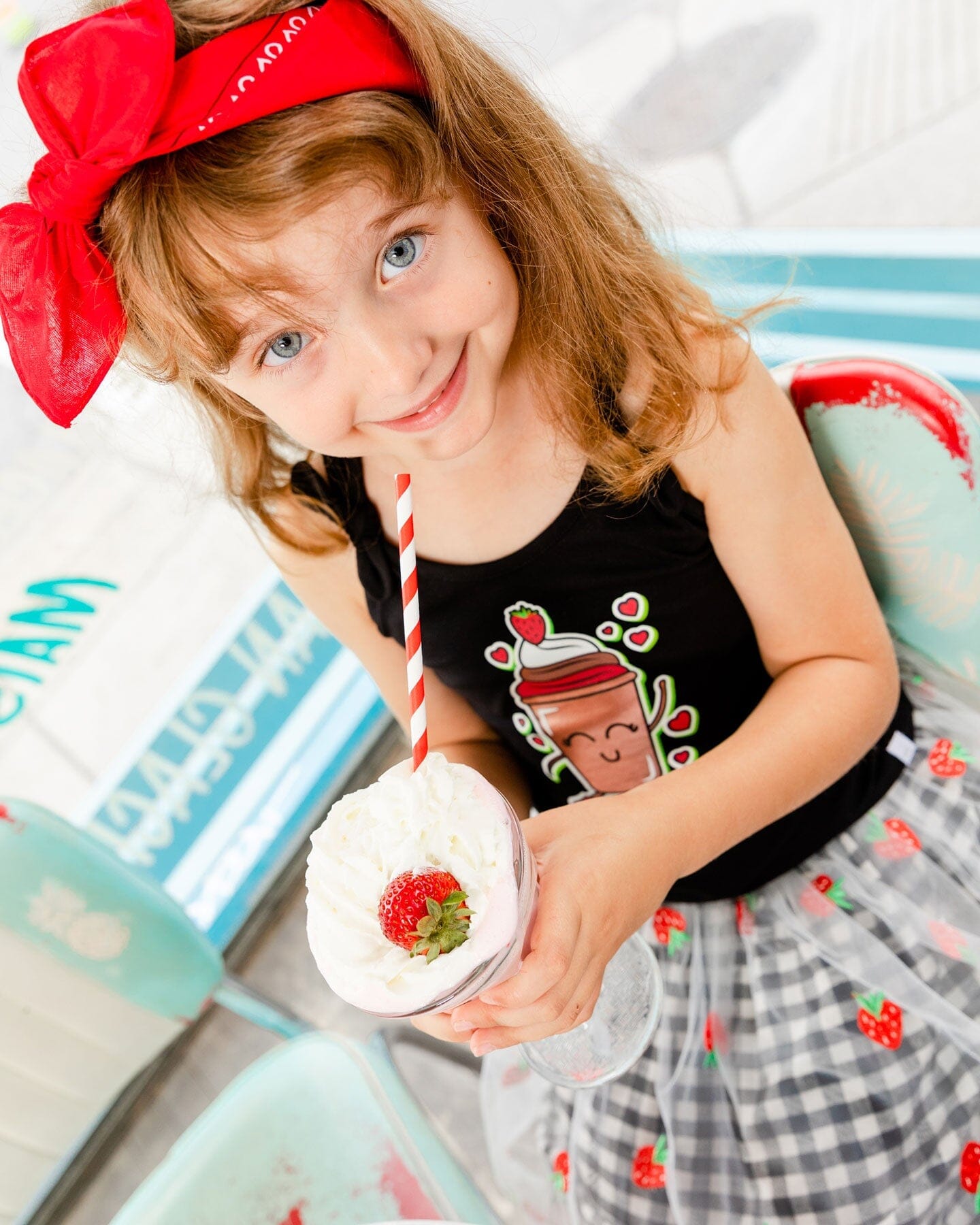 Contrasting patterns add one-of-a-kind style to our Skirt With Embroidered Mesh Little Vichy Black and White. In a flared A-line silhouette with an elastic waistband, this skirt features an allover black and white plaid pattern topped with a layer of sheer mesh embroidered with colorful red berries.