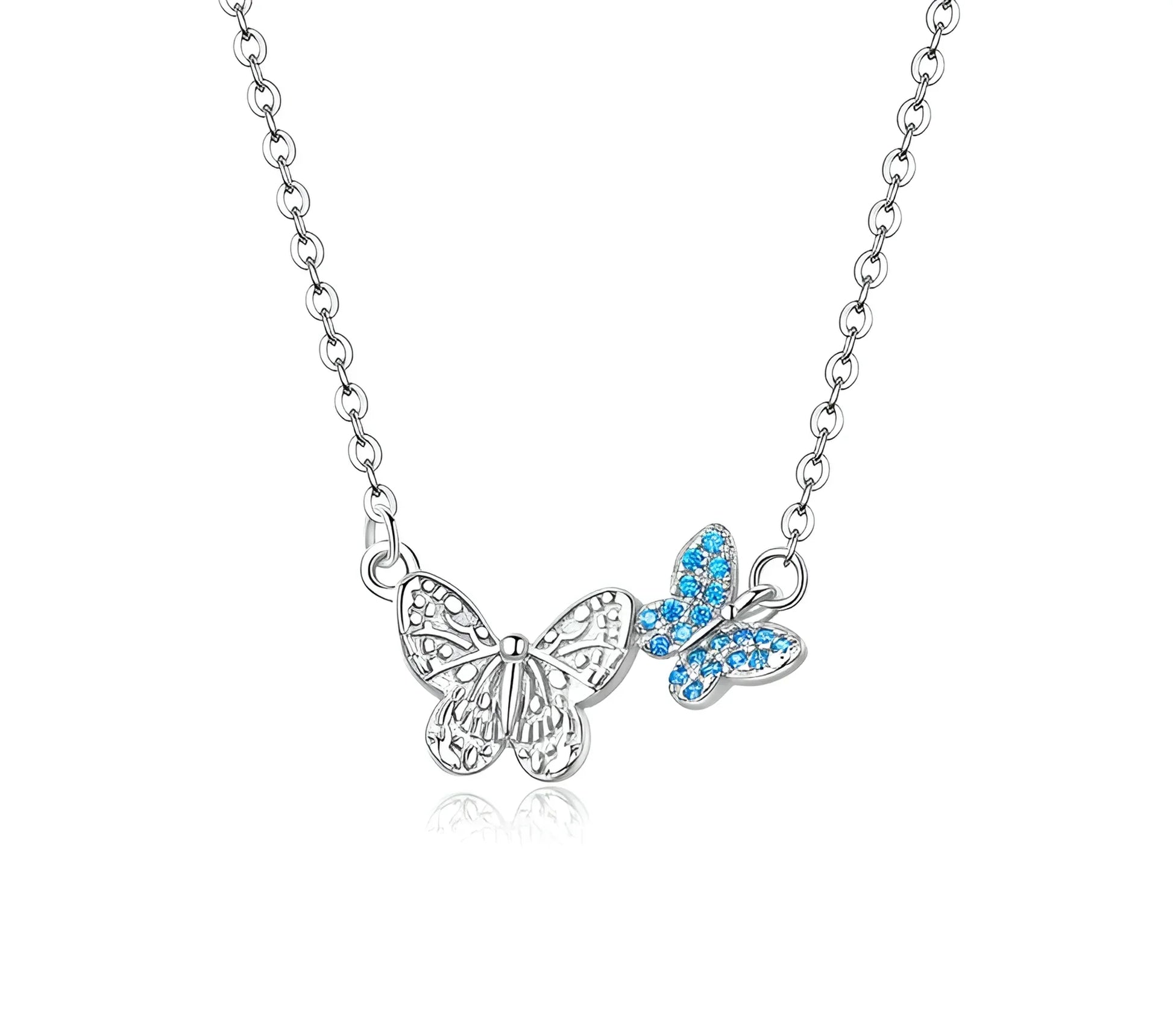 Capture the essence of freedom and elegance with this stunning butterfly necklace. Crafted from 925 sterling silver, the necklace features a delicate blue zircon butterfly pendant, adding a touch of sparkle and whimsy to your look. Perfect for everyday wear or special occasions, this necklace is a symbol of beauty and transformation.