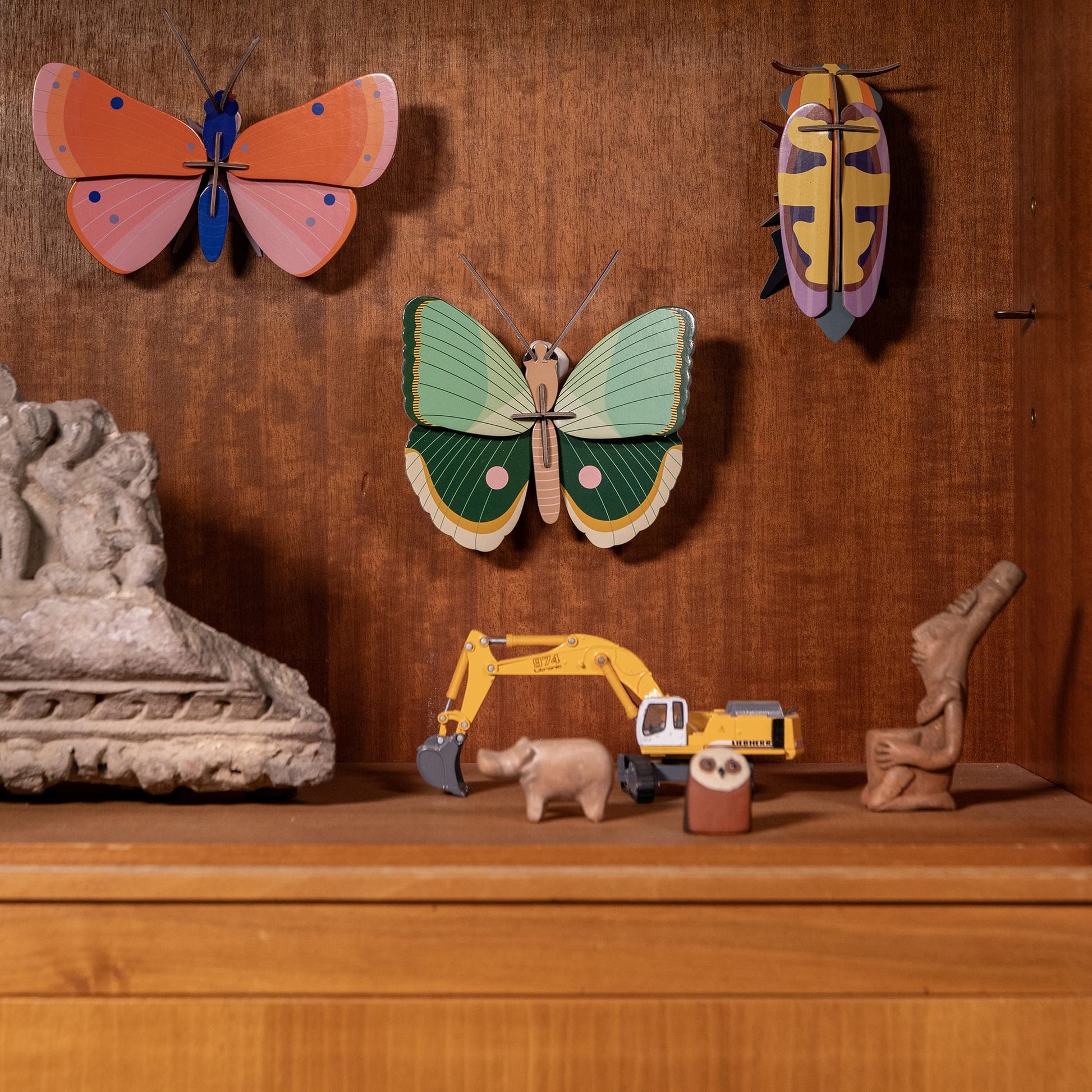 The Speckled Copper Butterfly by Studio Roof brings the vibrant beauty of insects into your home with its bright graphic patterns and eco-friendly design. Made from recycled cardboard and printed with vegetable inks, this nature-inspired 3D wall art is easy to assemble and arrives flat-packed.
