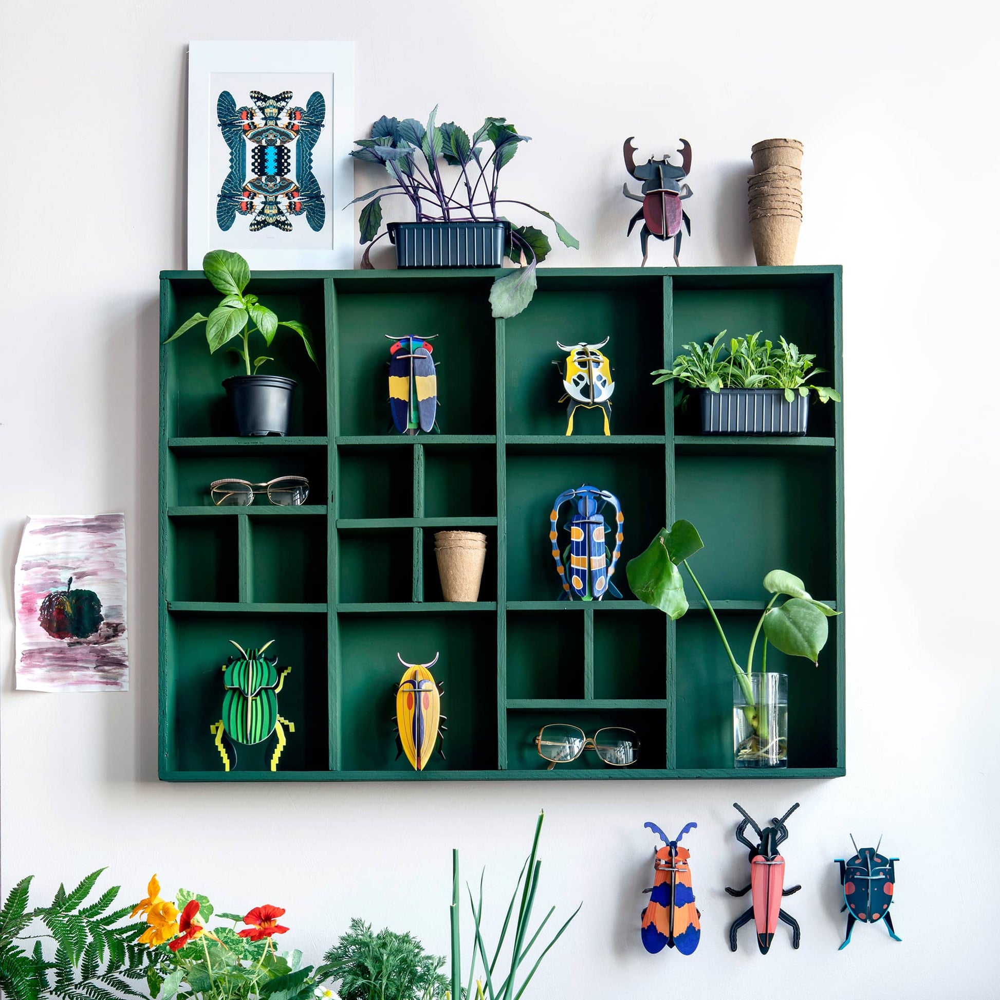 The Stag Beetle by Studio Roof is a stunning 3D art piece that brings the fascinating world of insects into your home. Inspired by nature's little wonders, this beetle is named for its large mandibles, which resemble the antlers of stags. Crafted from recycled cardboard and printed with vegetable inks, it combines sustainability with artistry to create a unique and eye-catching decoration.