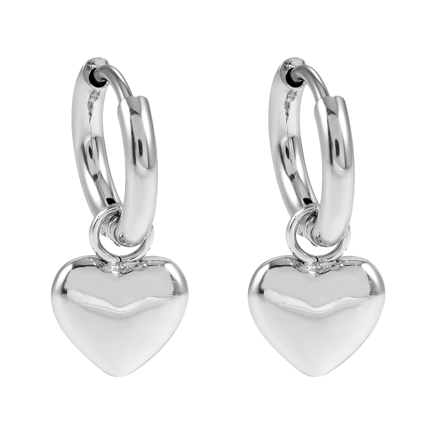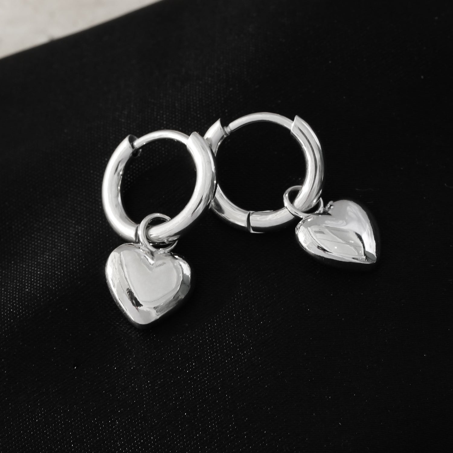 STOWE Silver: Mini Hoop Earrings Anchoring a Heart Shaped Charm