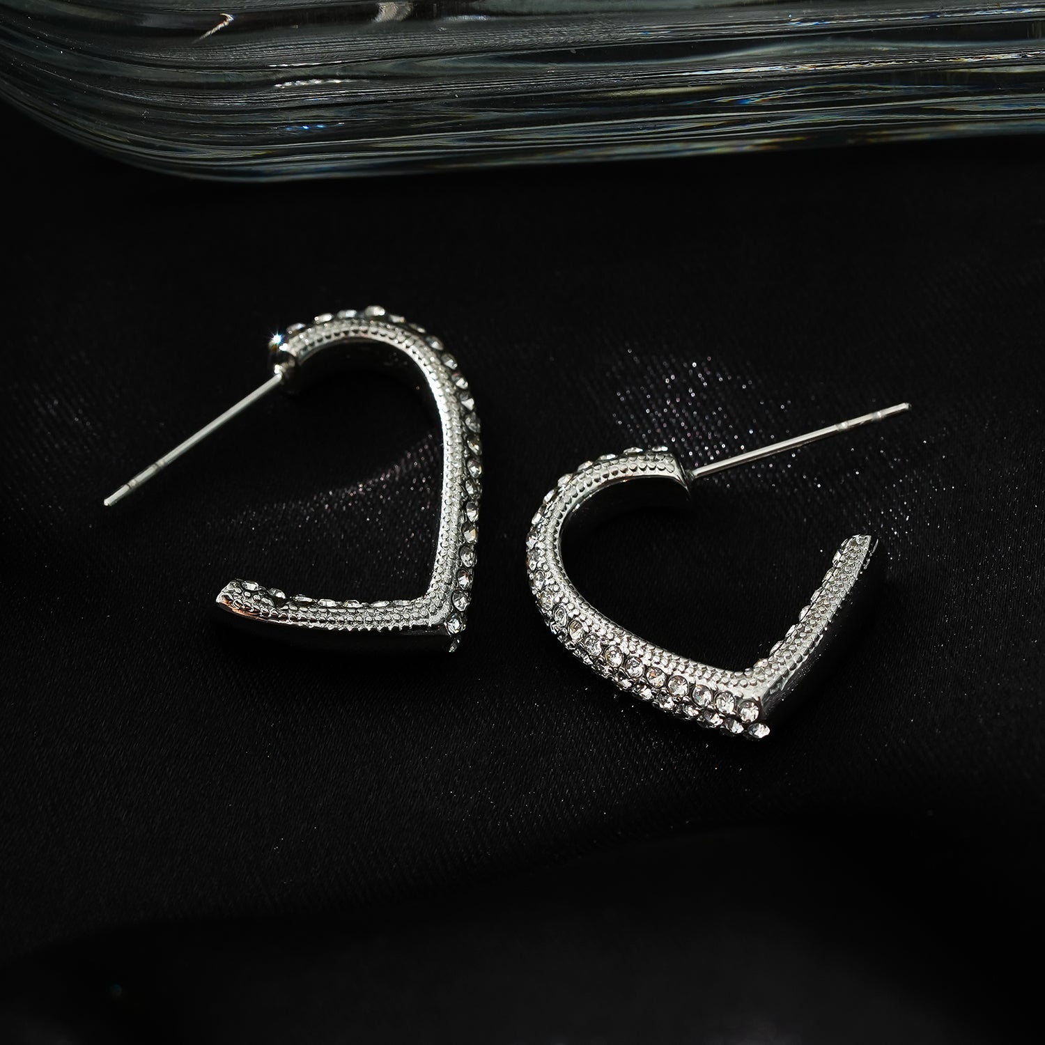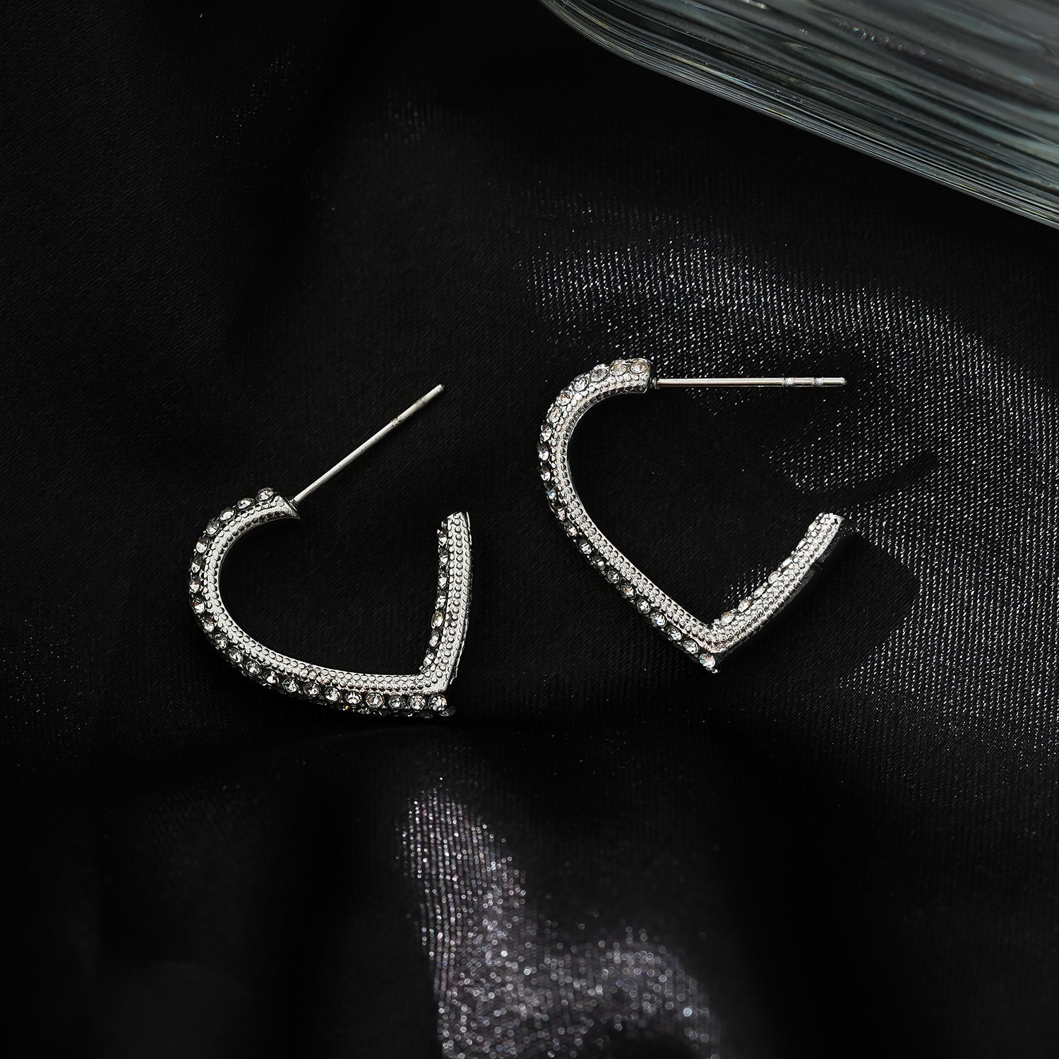 Style ANJAR White Gold (Silver Tone): Heart Shaped Hoops embedded with Zirconia Gemstones