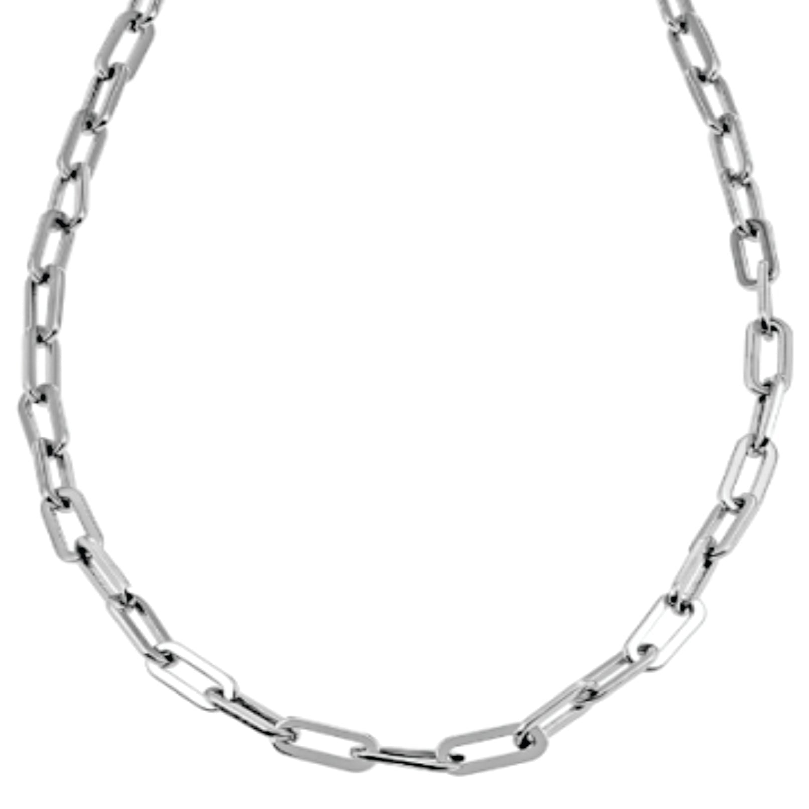 Discover the perfect blend of modern design and classic elegance with our Essential Silver Chain Link Paper-Clip Necklace. Ideal for any occasion, this piece is a must-have for those who value quality and style. Indulge in the luxury of 18K white gold and let your look shine with timeless sophistication.