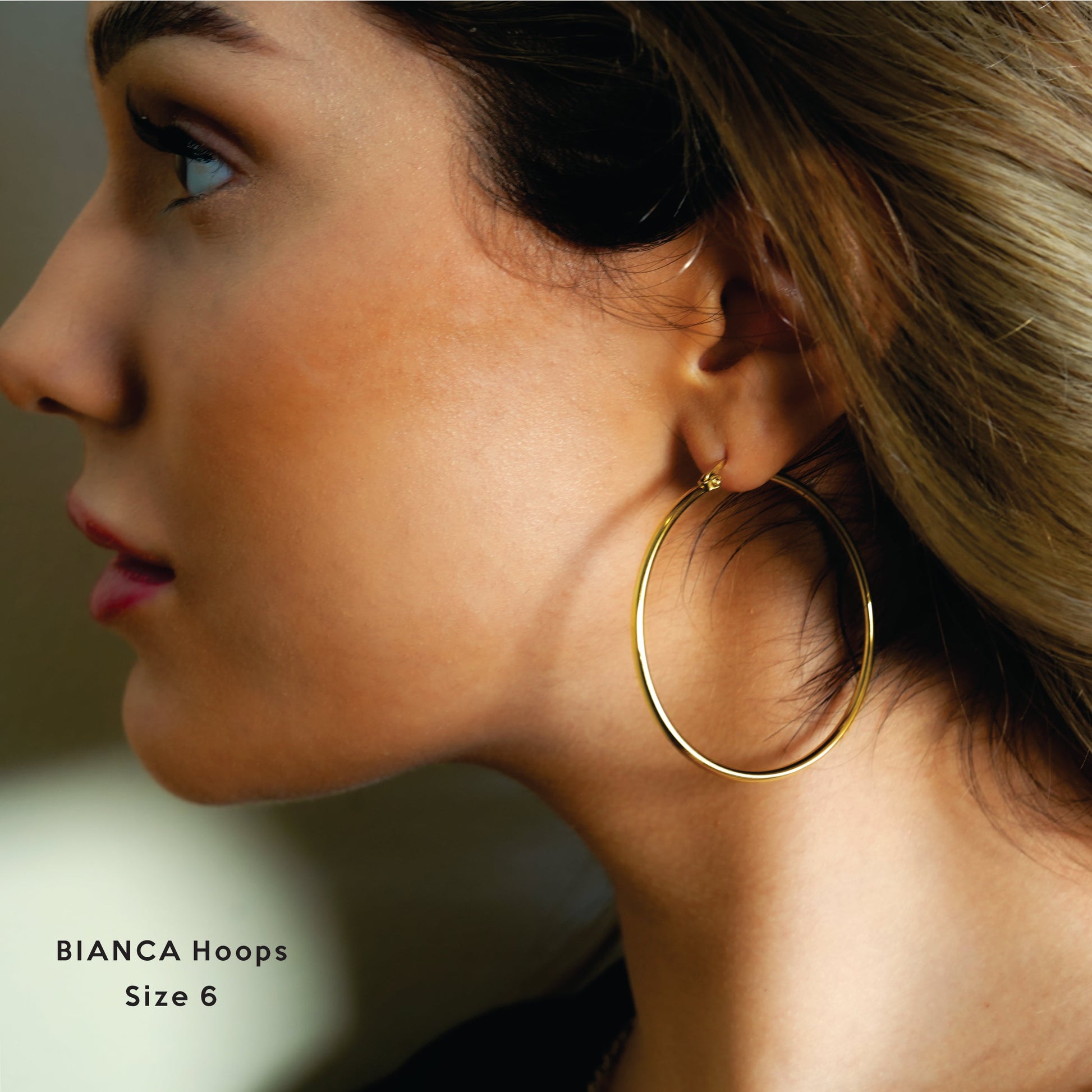 Our hoops are meticulously crafted in small batches using a premium graded proprietary alloy. This attention to detail guarantees exceptional quality and durability. Each pair is finished in opulent 18 karat traditional gold or ultra-luxe 18 karat white gold (silver toned), adding a sophisticated touch to your look.