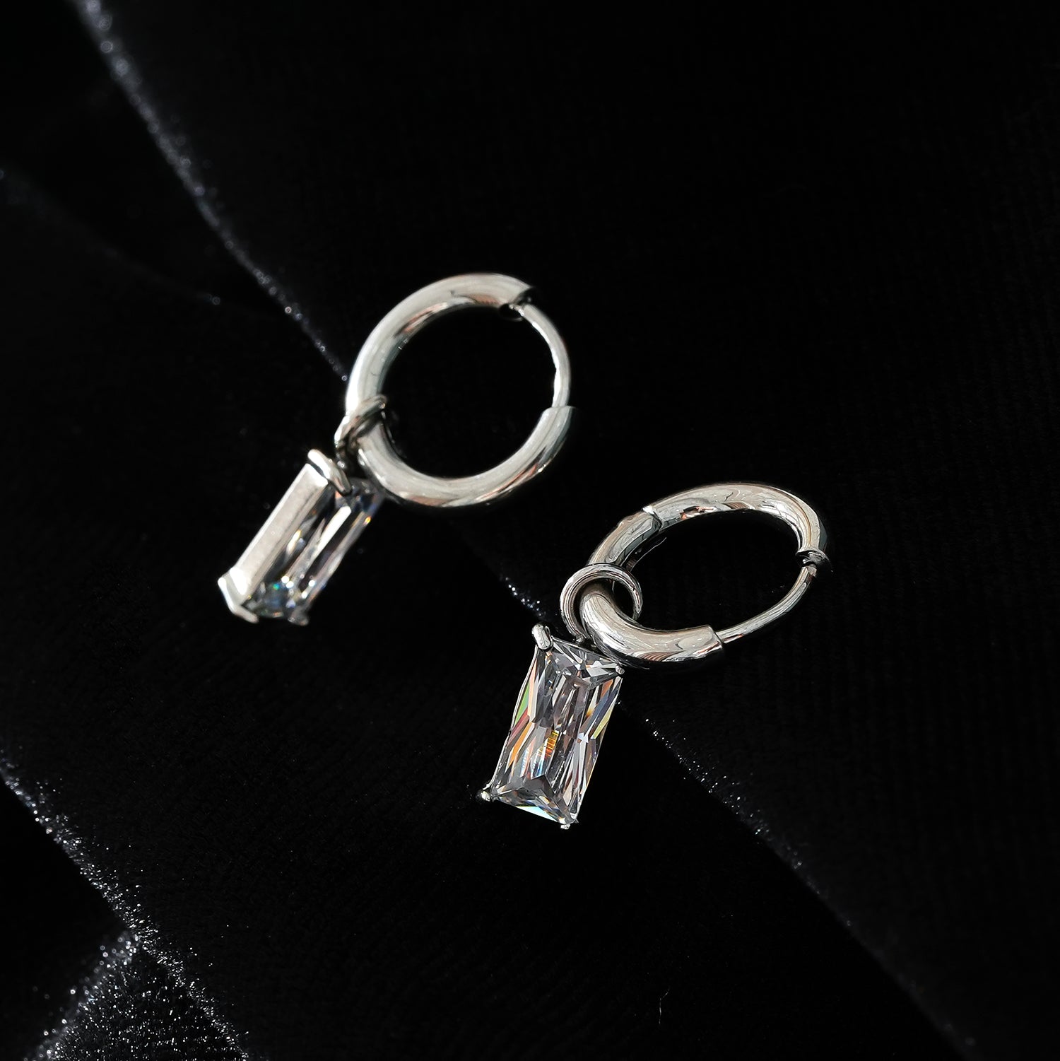 Add a touch of elegance to your look with these rectangle encased mini clear zirconia anchored on a hoop. Subtle, pretty and eye-catching; perfect for any outfit.