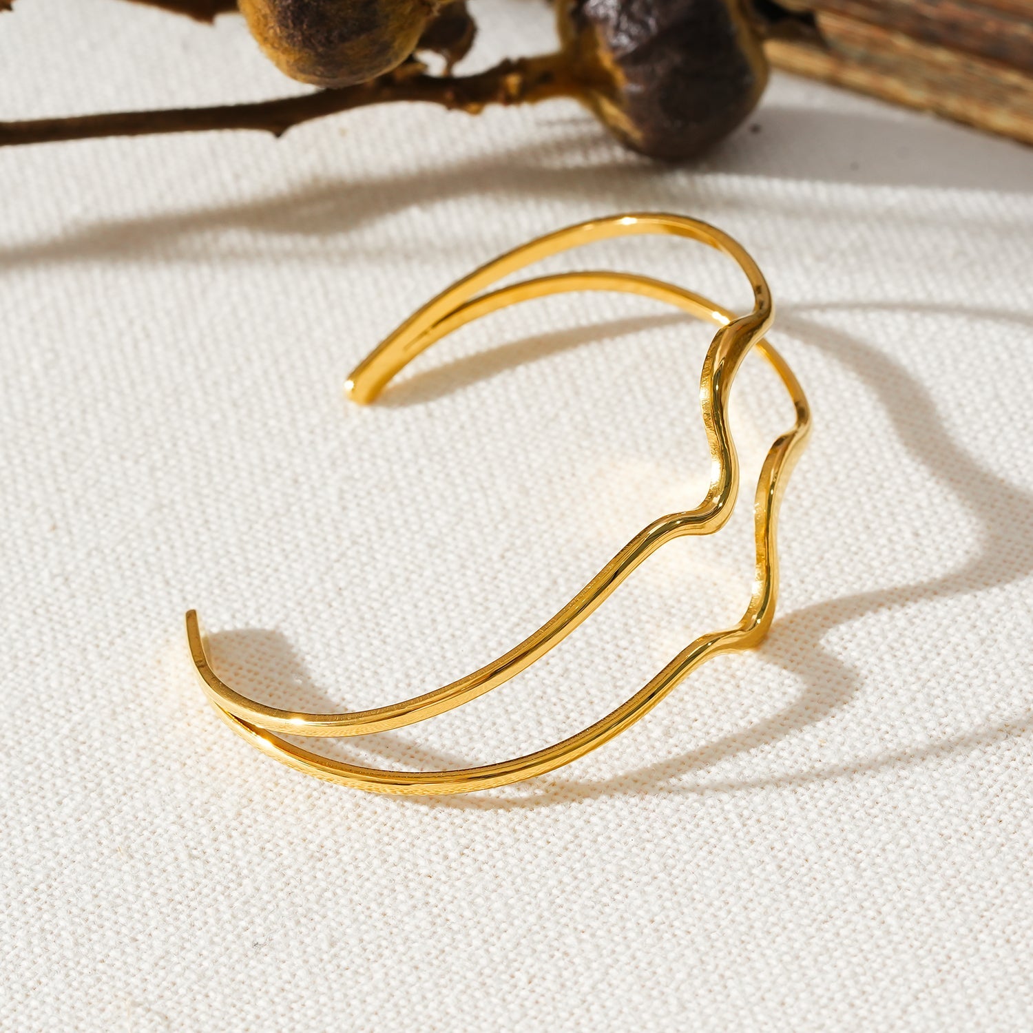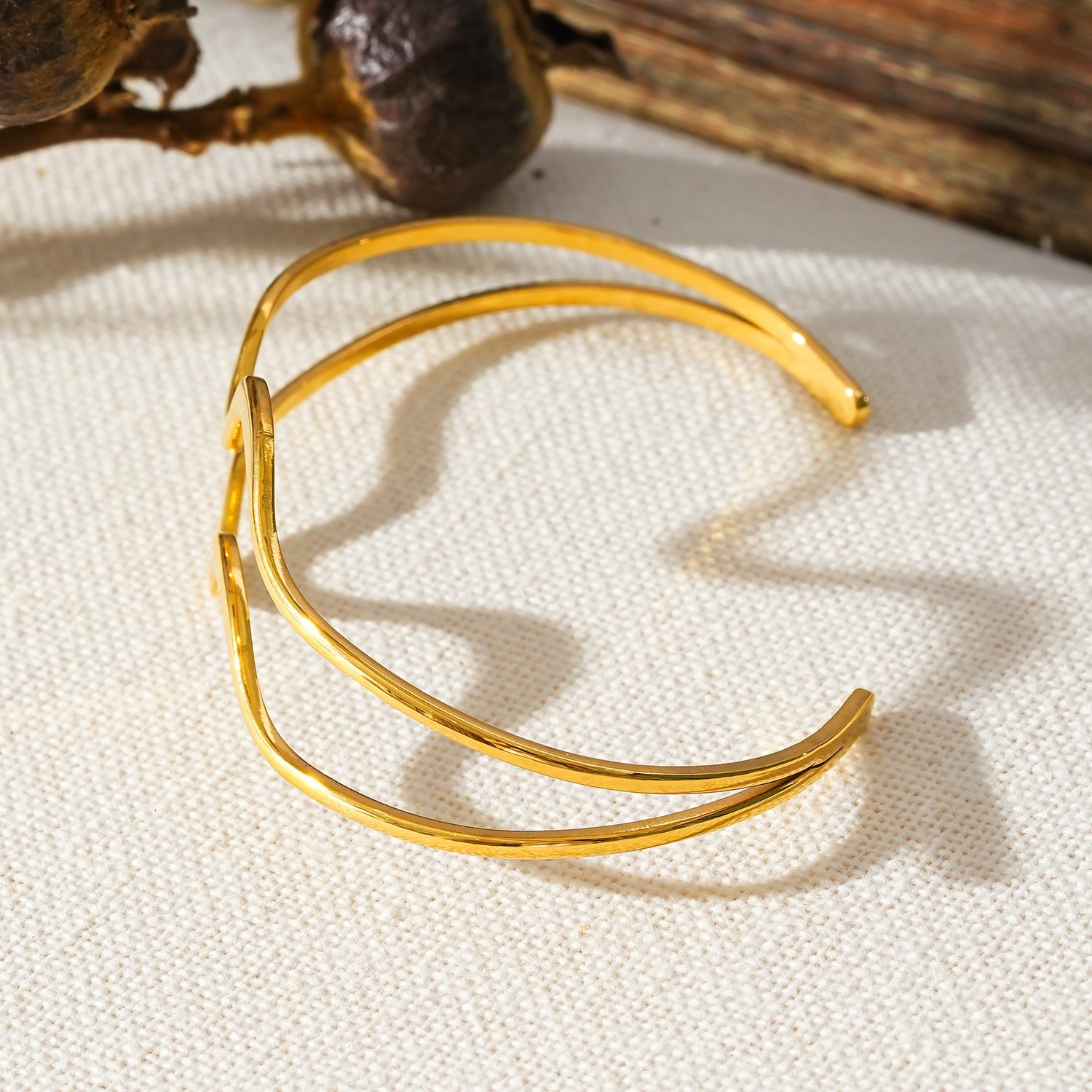 Style CHITRA: Industrial-Chic Bracelet with Abstract Shaped Parallel Bands in Gold