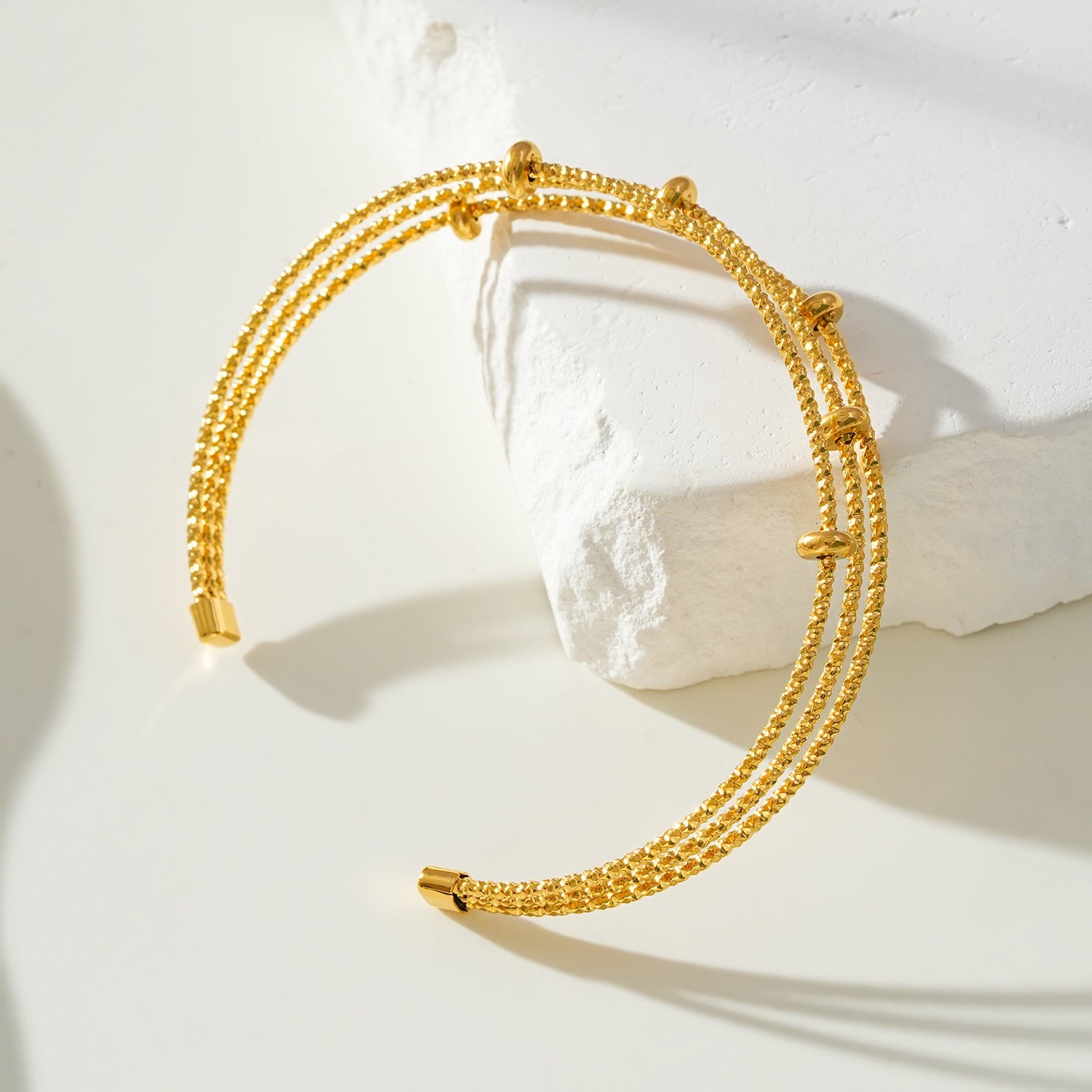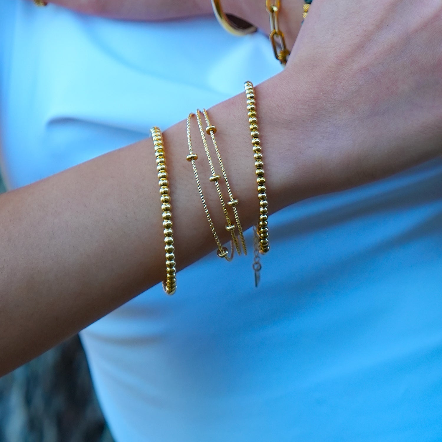 Style FARZIKA Gold: Triple Stacked Textured Beaded Bracelet