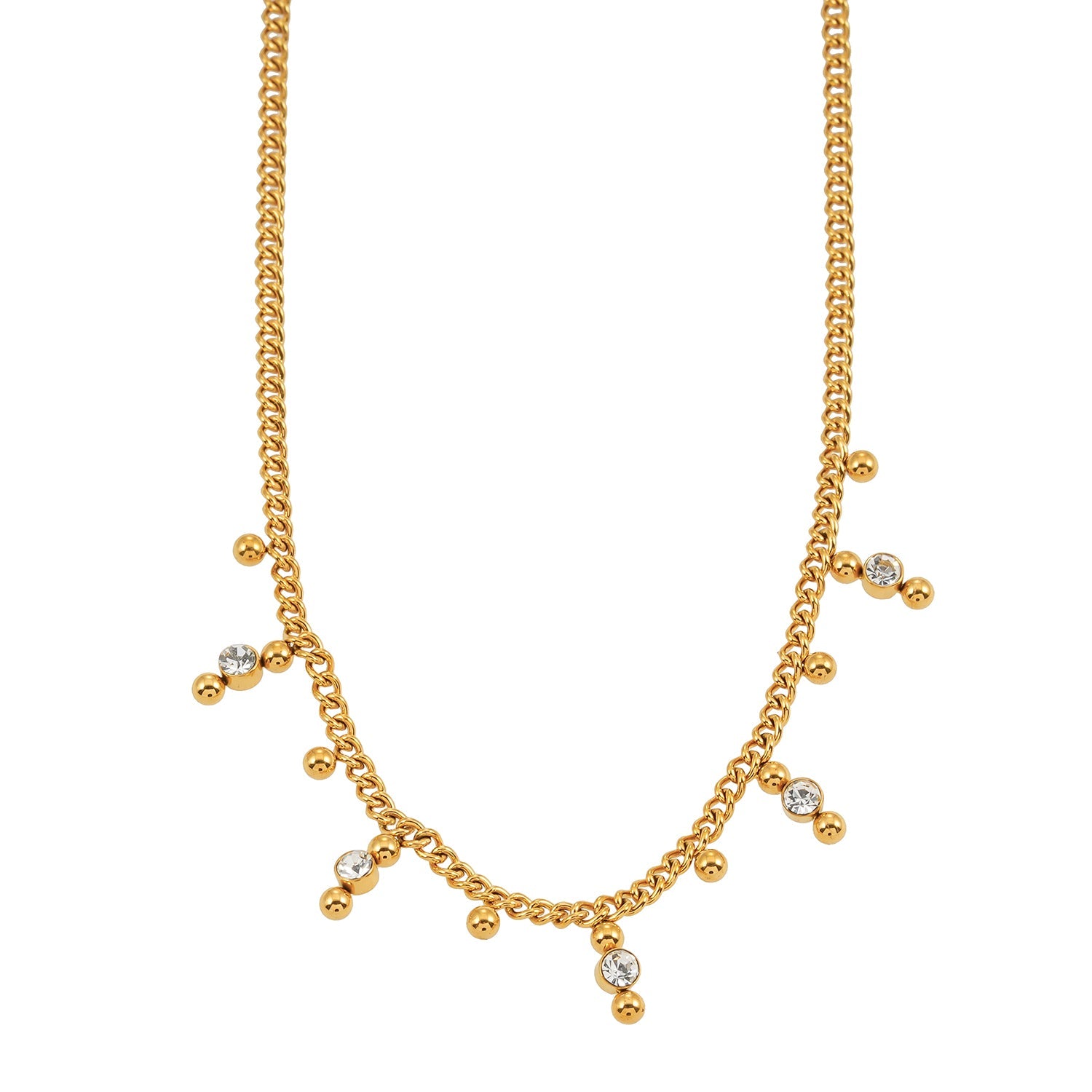 Style KALPI: Zirconia & Ball-Beaded Chain Necklace in Gold