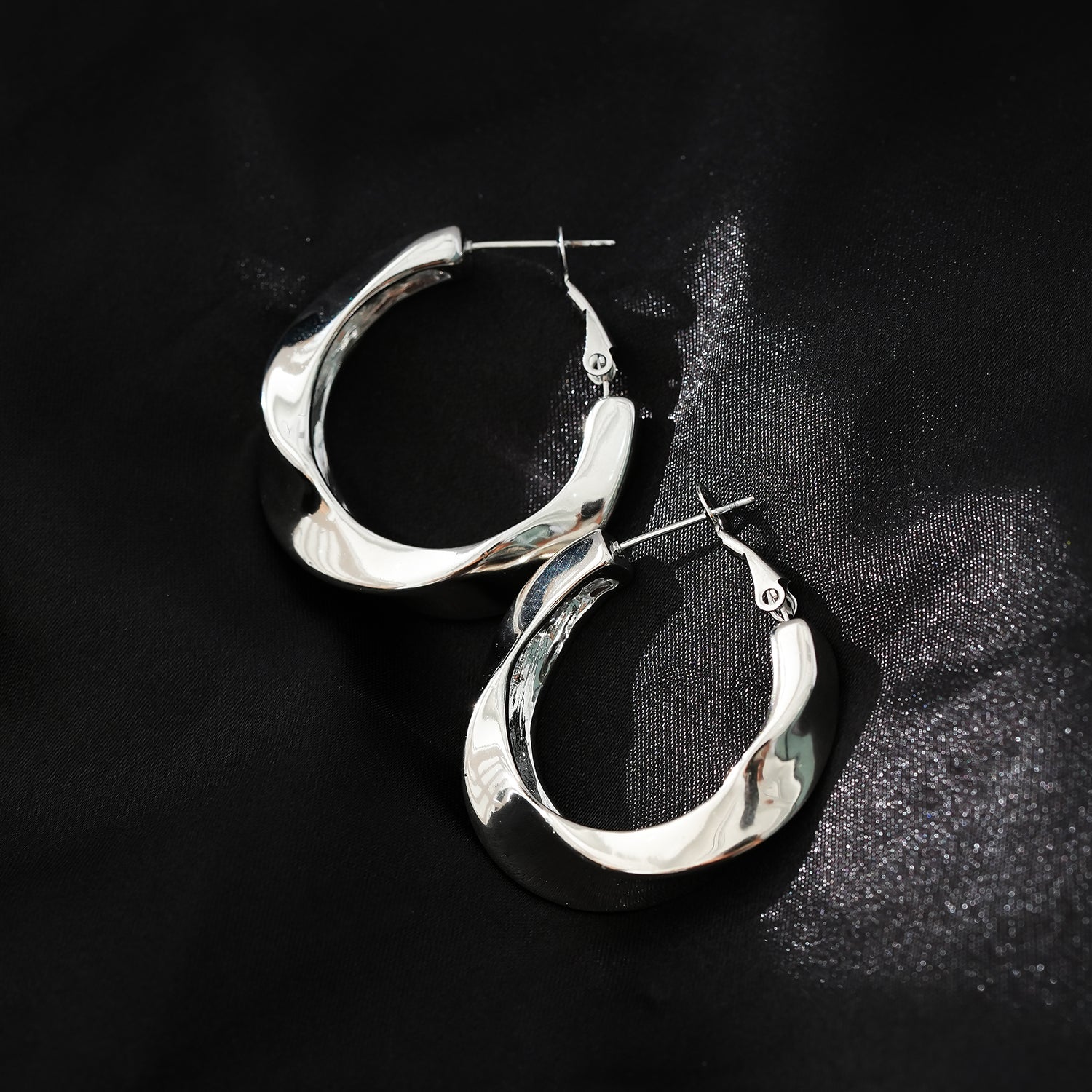 The sleek, sculptured design gives these hoops a contemporary edge, perfect for elevating both everyday outfits and special occasion looks. Lightweight and comfortable, they seamlessly blend artistic expression with effortless style. Add a touch of modern elegance to your jewelry collection with these unique, abstract hoops.