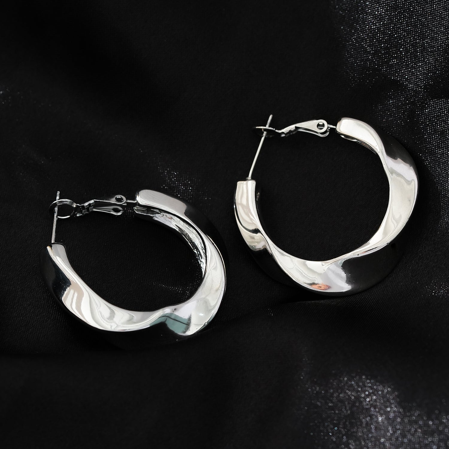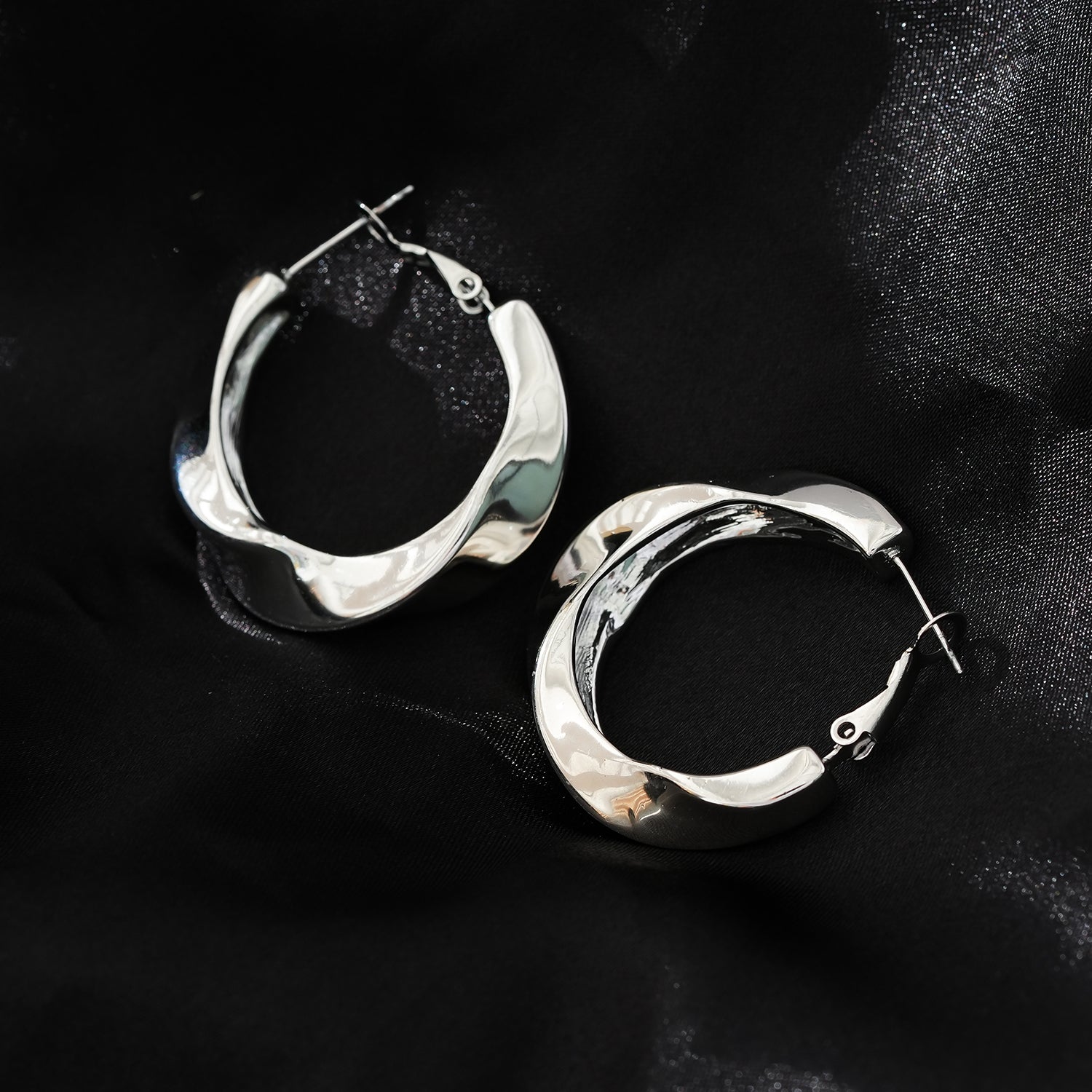 Style MARFA White Gold (Silver Toned): Sculptured Abstract Hoop Earrings